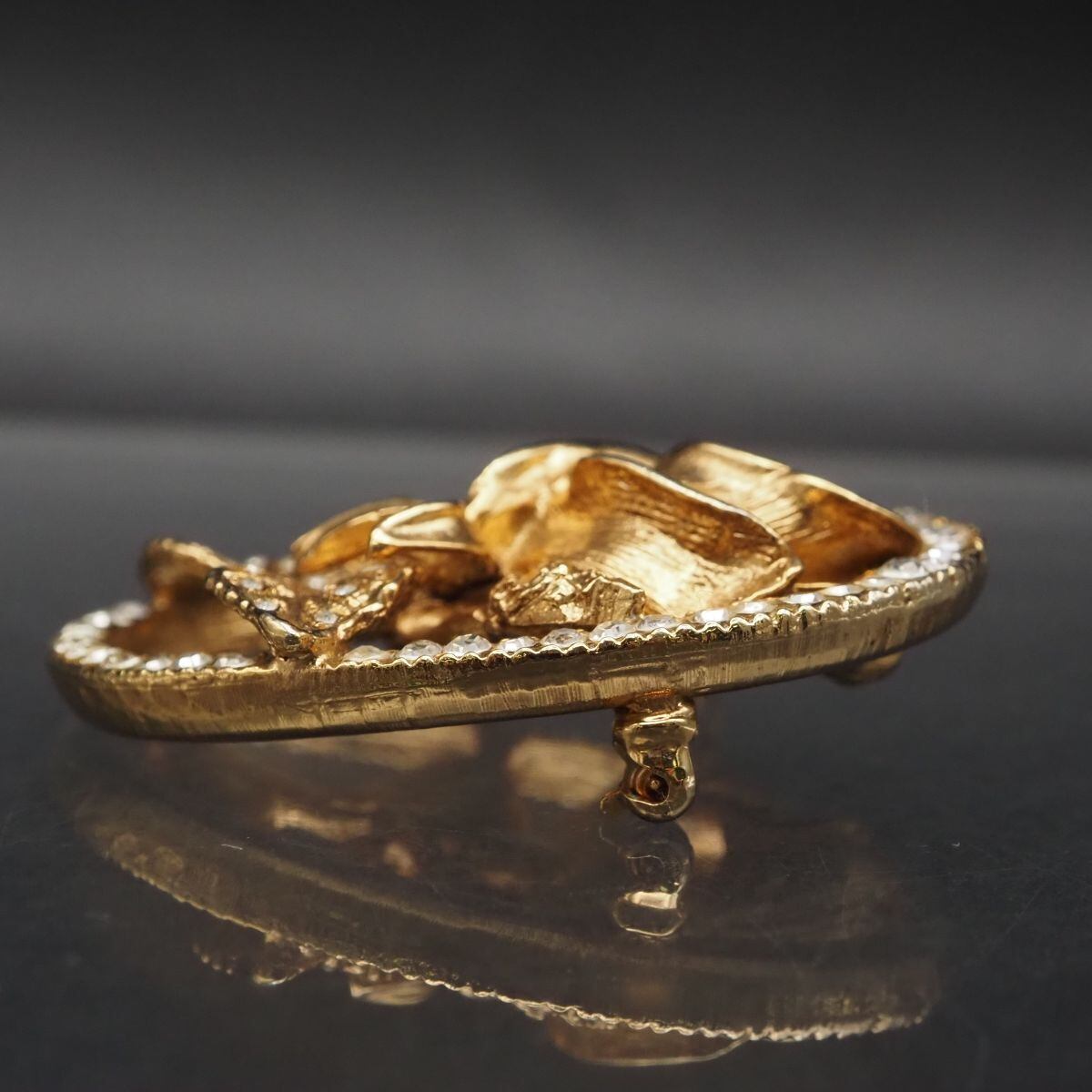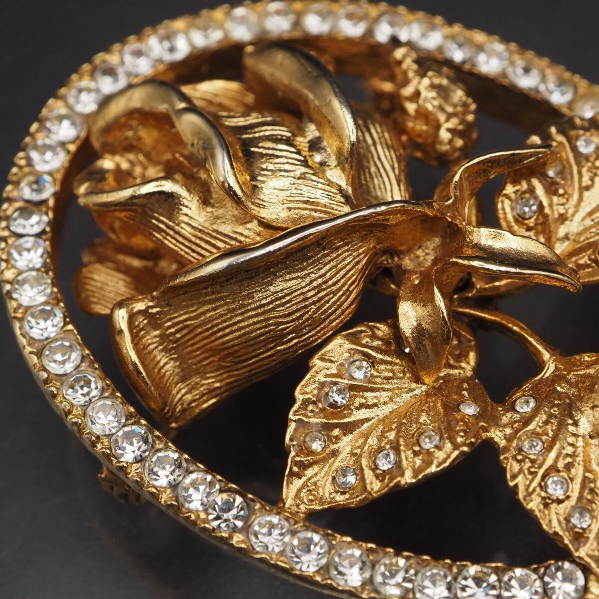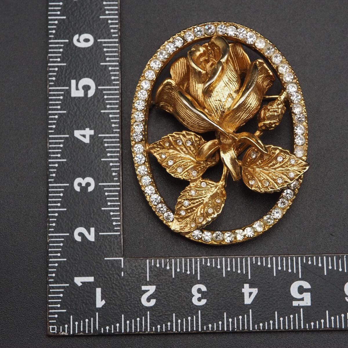 F323 ブローチ 薔薇 バラ ローズ ラインストーン ゴールド デザイン コスチュームジュエリー
