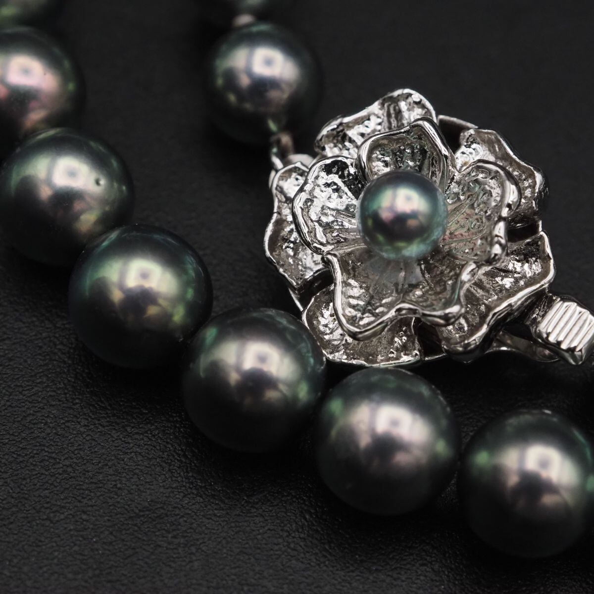 F379 本真珠 6.9mm珠 パール SILVER刻印 ネックレス グリーン ピーコック系カラー デザイン シルバー 6月誕生石