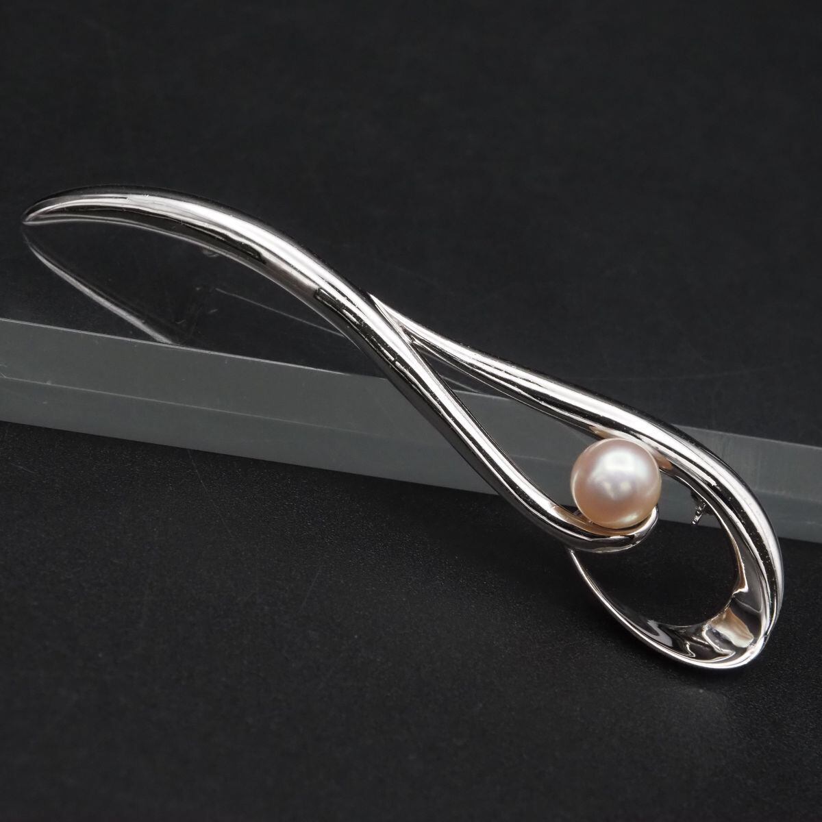 F604 淡水真珠 パール SILVER刻印 ブローチ デザイン シルバー コサージュ 6月誕生石