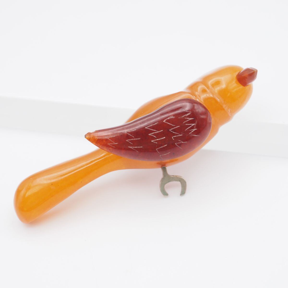 F884 琥珀 コハク アンバー ブローチ バード デザイン シルバー ヴィンテージ
