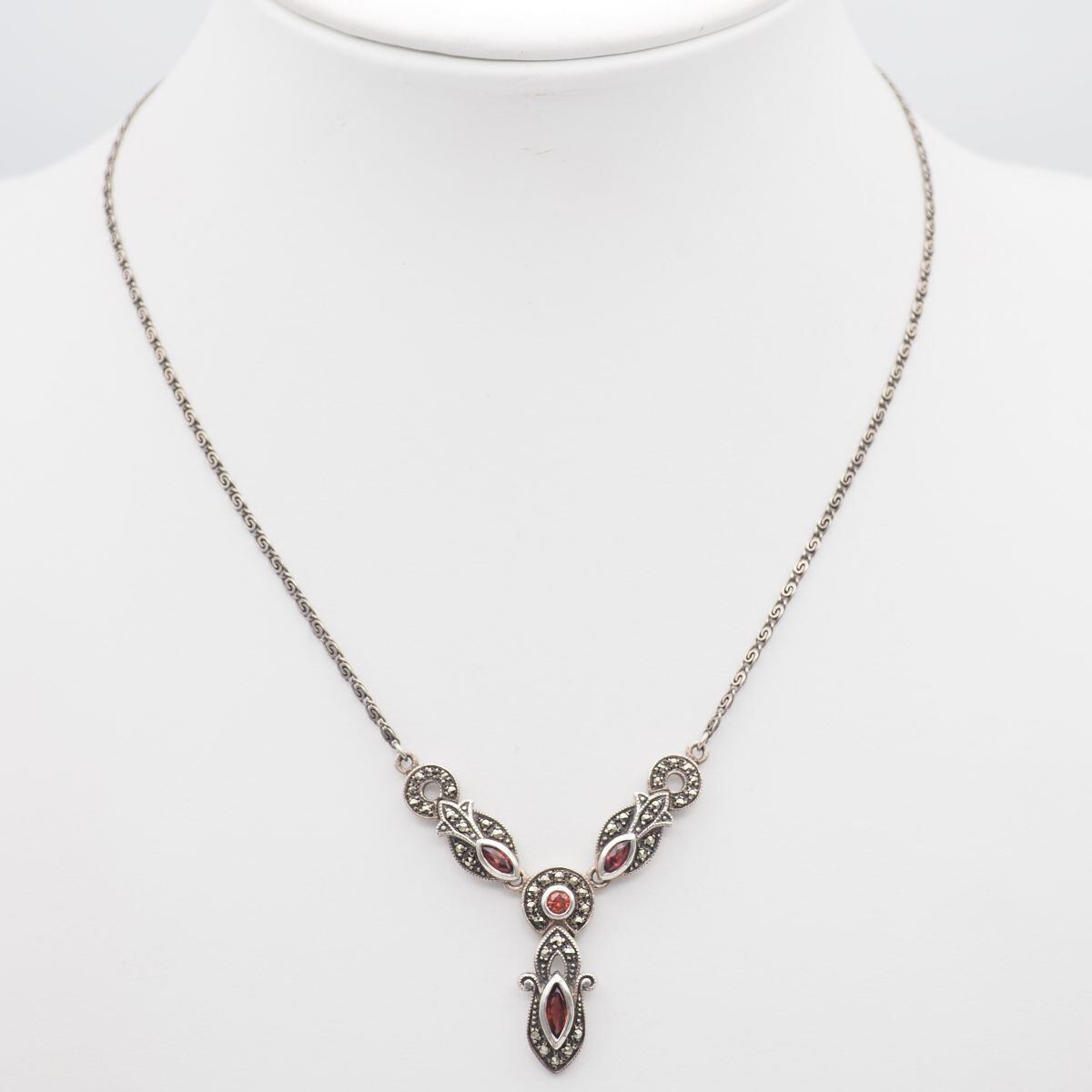 F502 ガーネット マーカサイト マルカジット STERLING S925刻印 ネックレス デザイン シルバー ヴィンテージ 1月誕生石