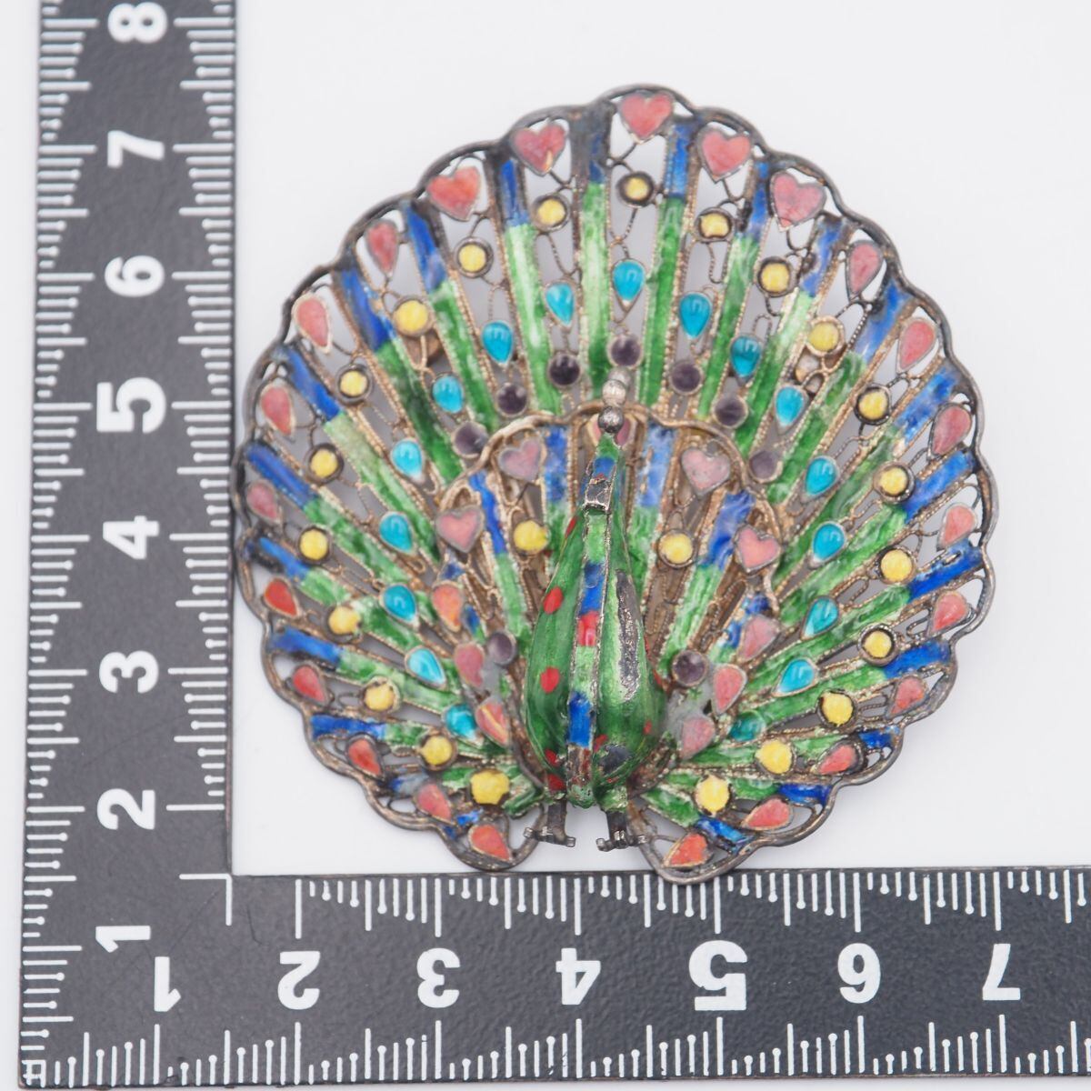 F690 七宝 SILVER刻印 ブローチ 孔雀 クジャク マルチカラー デザイン シルバー ヴィンテージ