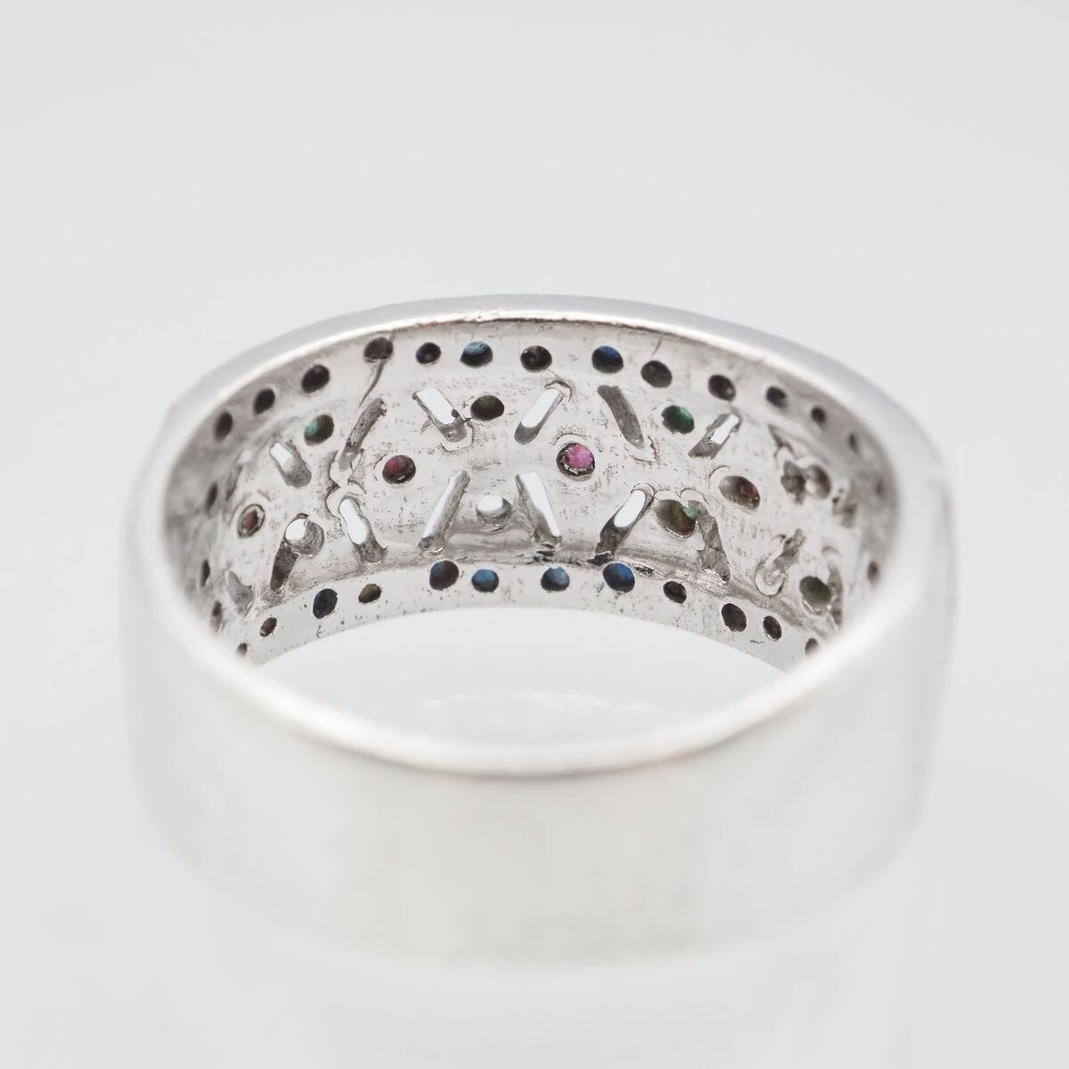 F878 サファイア? ルビー? スピネル? SV925刻印 リング デザイン シルバー 指輪 14号