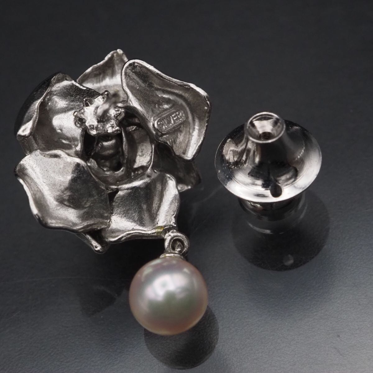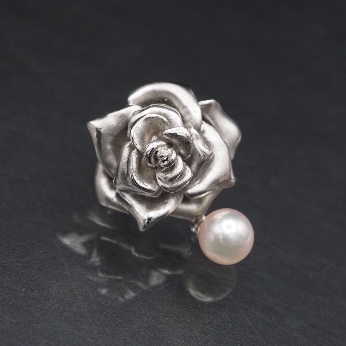 F926 本真珠 6.5mm珠 パール SILVER刻印 ピンブローチ 薔薇 バラ ローズ デザイン シルバー ラペルピン 6月誕生石