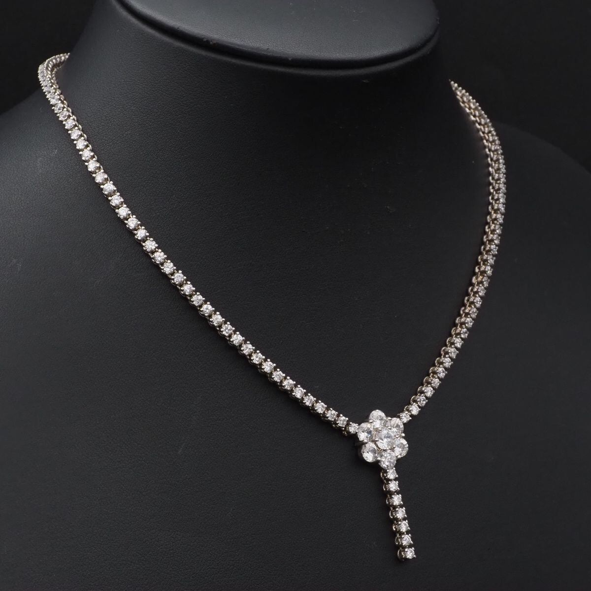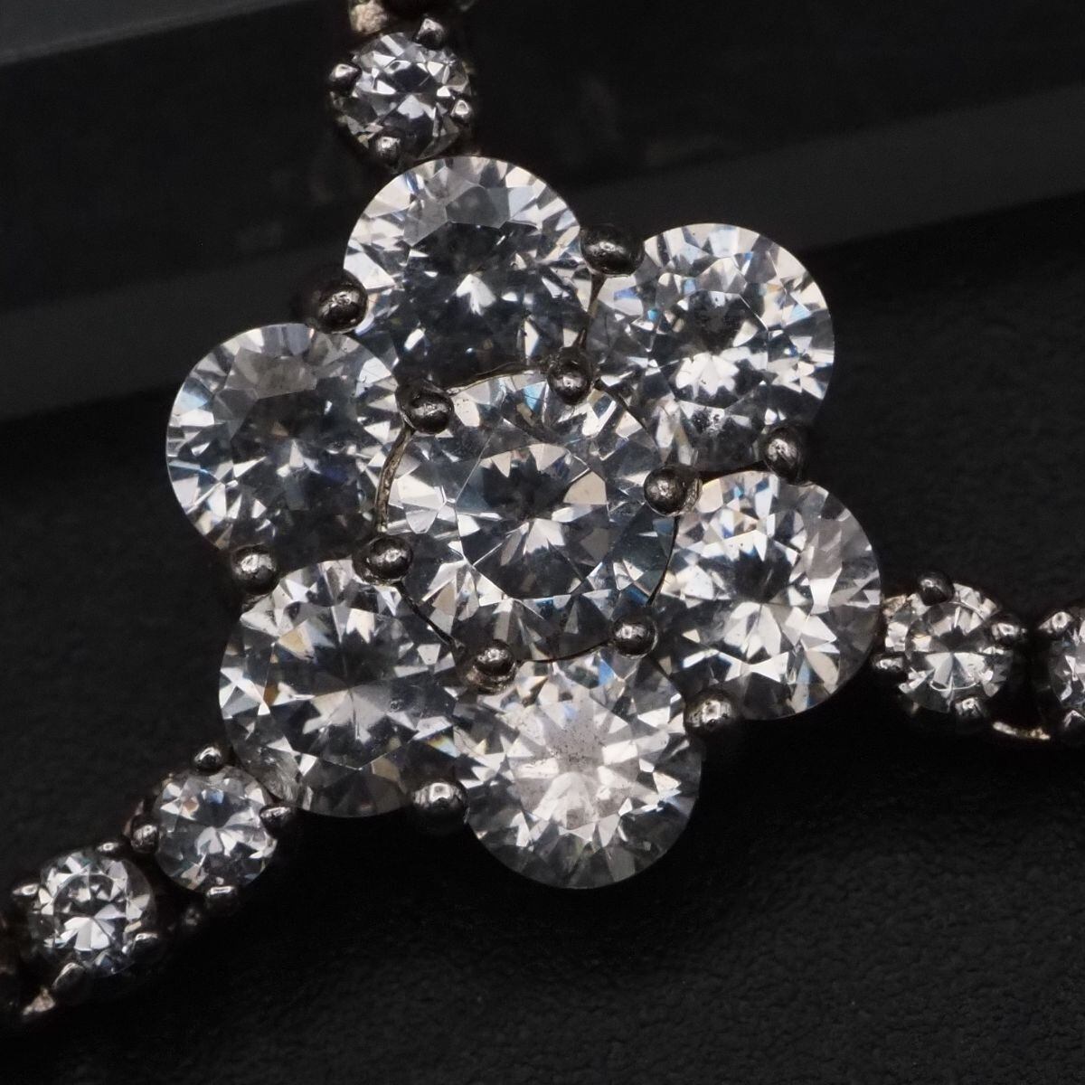G052 ダイヤモンド風 925刻印 テニス ネックレス フラワー デザイン シルバー