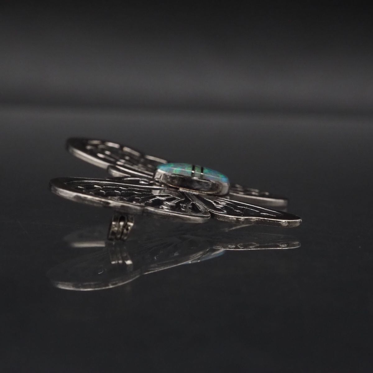 F954 オパール 925刻印 ブローチ 蝶 バタフライ 透かし彫り デザイン シルバー 10月誕生石