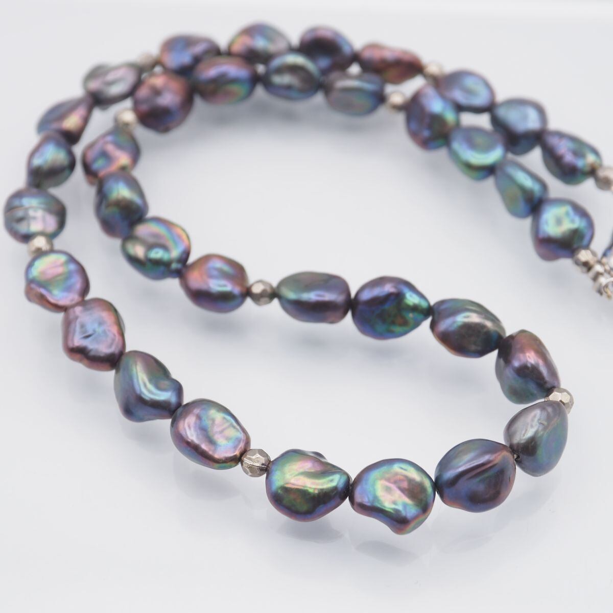 G050 バロックパール 真珠 SV925刻印 ネックレス ピーコック系カラー デザイン シルバー 6月誕生石