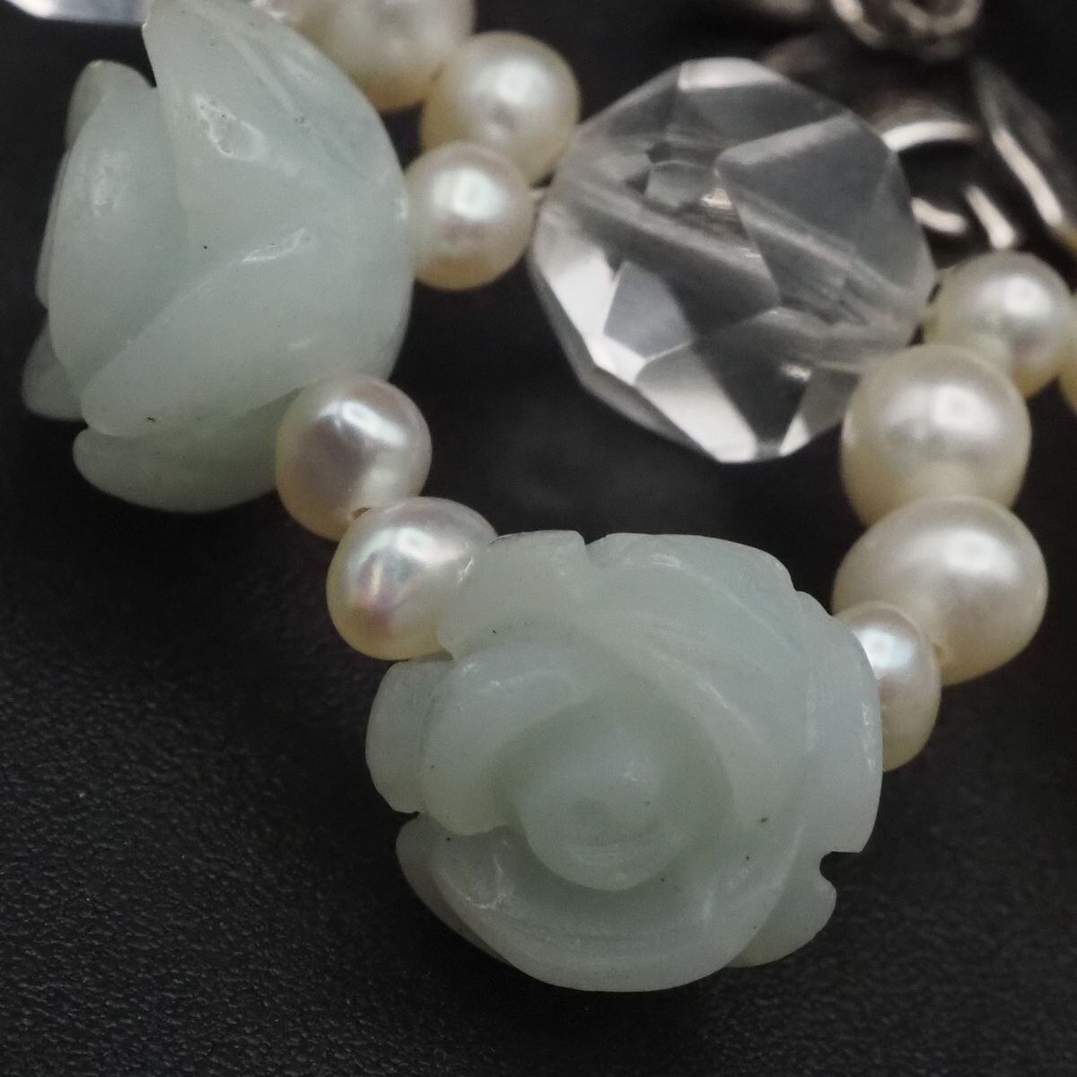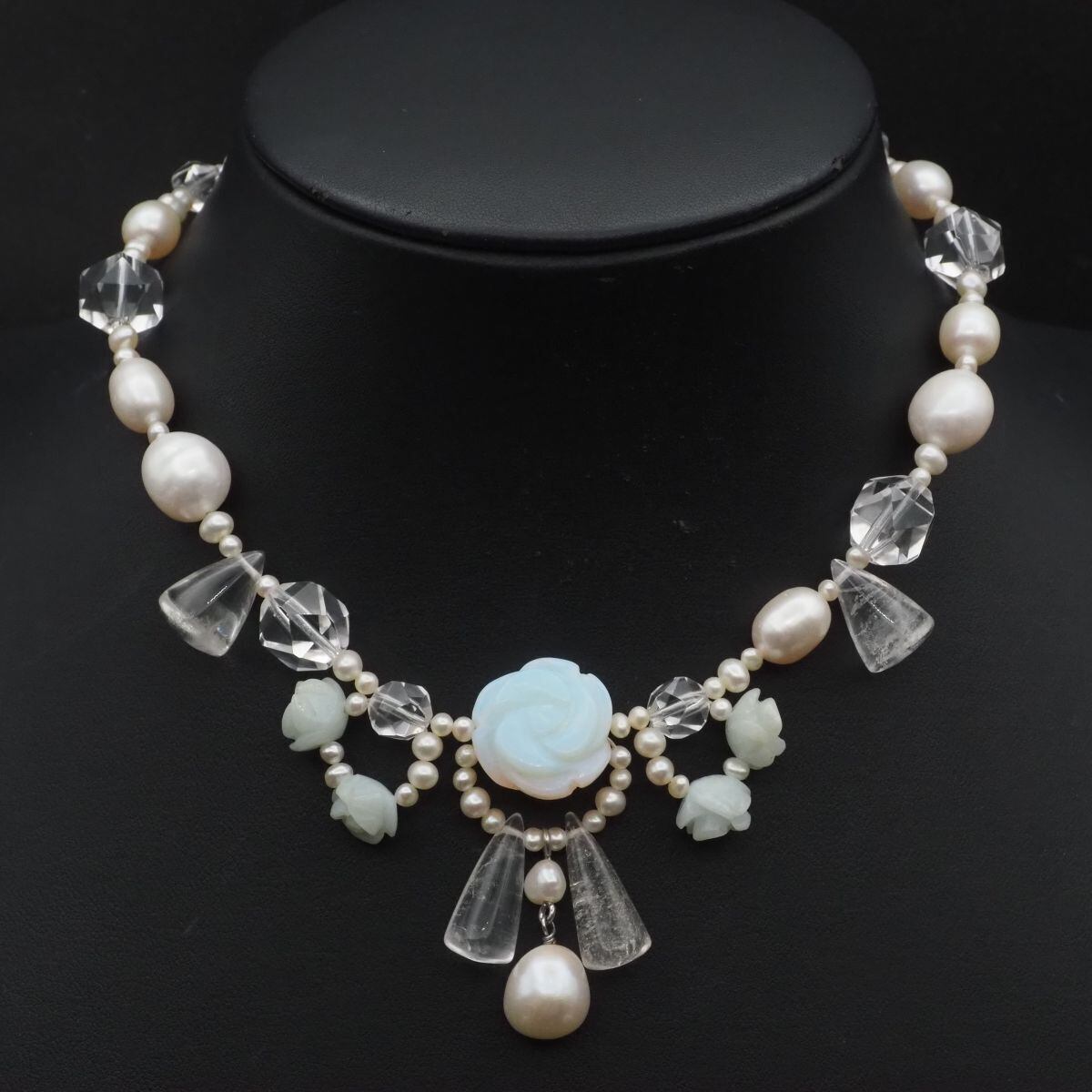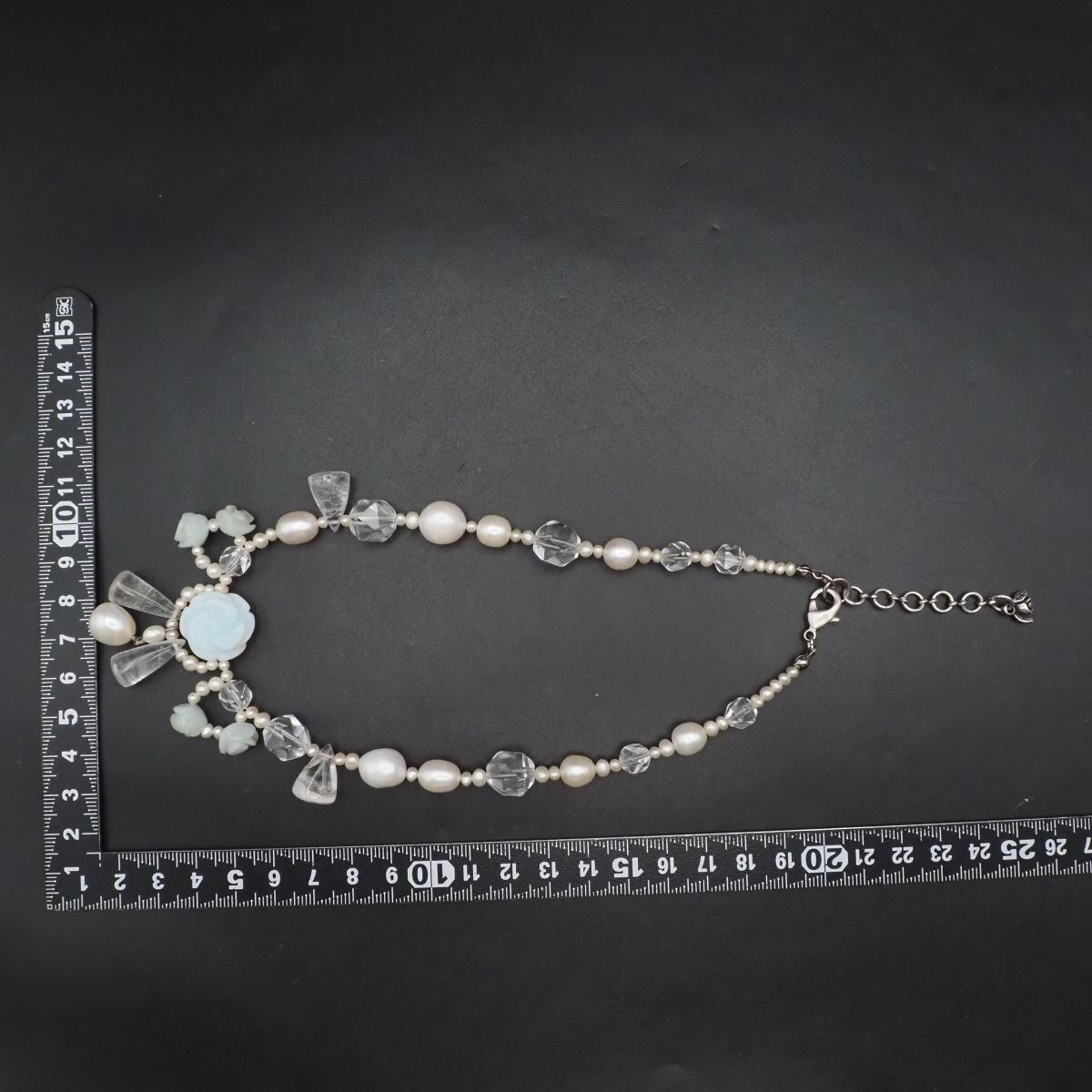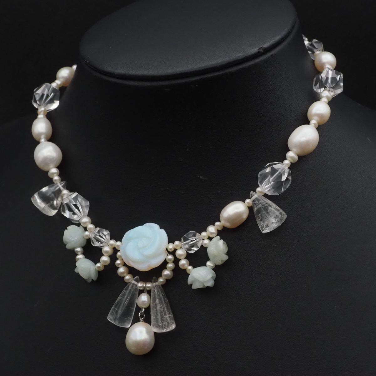 G035 imac イマック カラーストーン ネックレス 淡水真珠 パール 水晶 薔薇 バラ ローズ デザイン シルバー 6月誕生石
