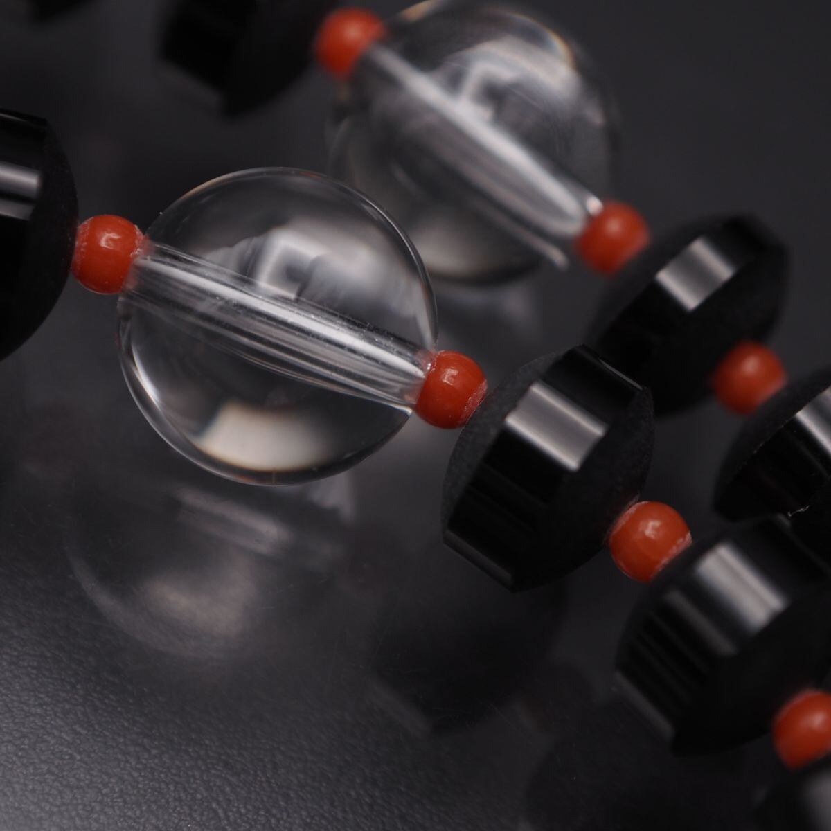 B842 オニキス 水晶 赤珊瑚 サンゴ STERLING SILVER925刻印 ネックレス デザイン シルバー 3月誕生石