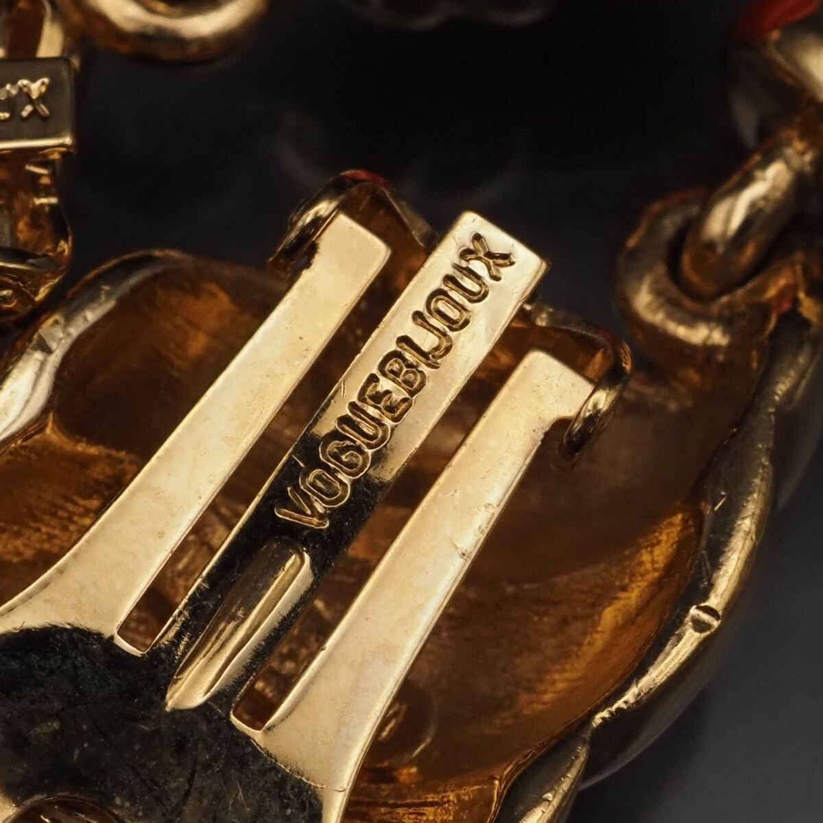 F596 イタリア ヴィンテージ VOGUE BIJOUX ヴォーグビジュ イヤリング サンゴ風 ゴールド スウィング デザイン