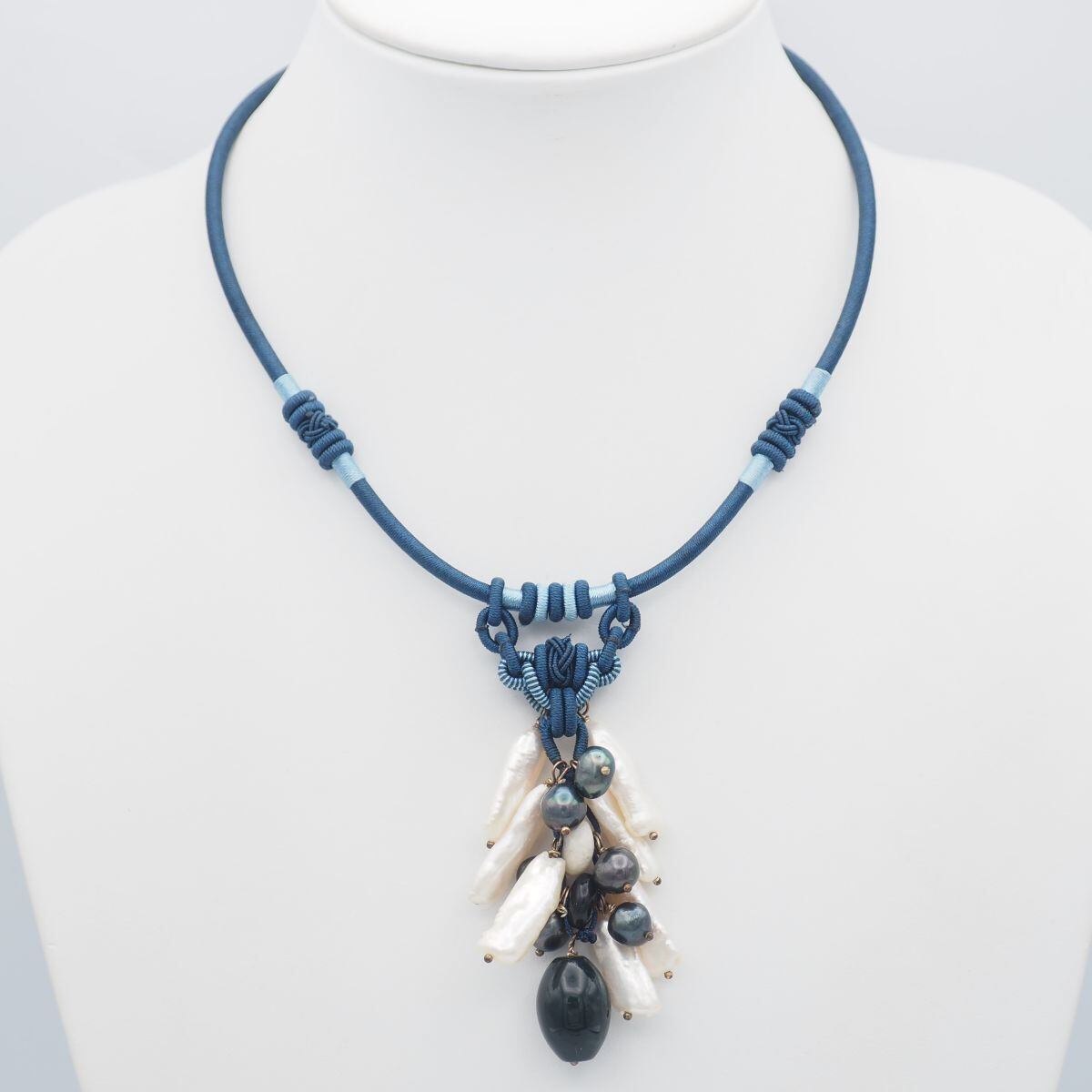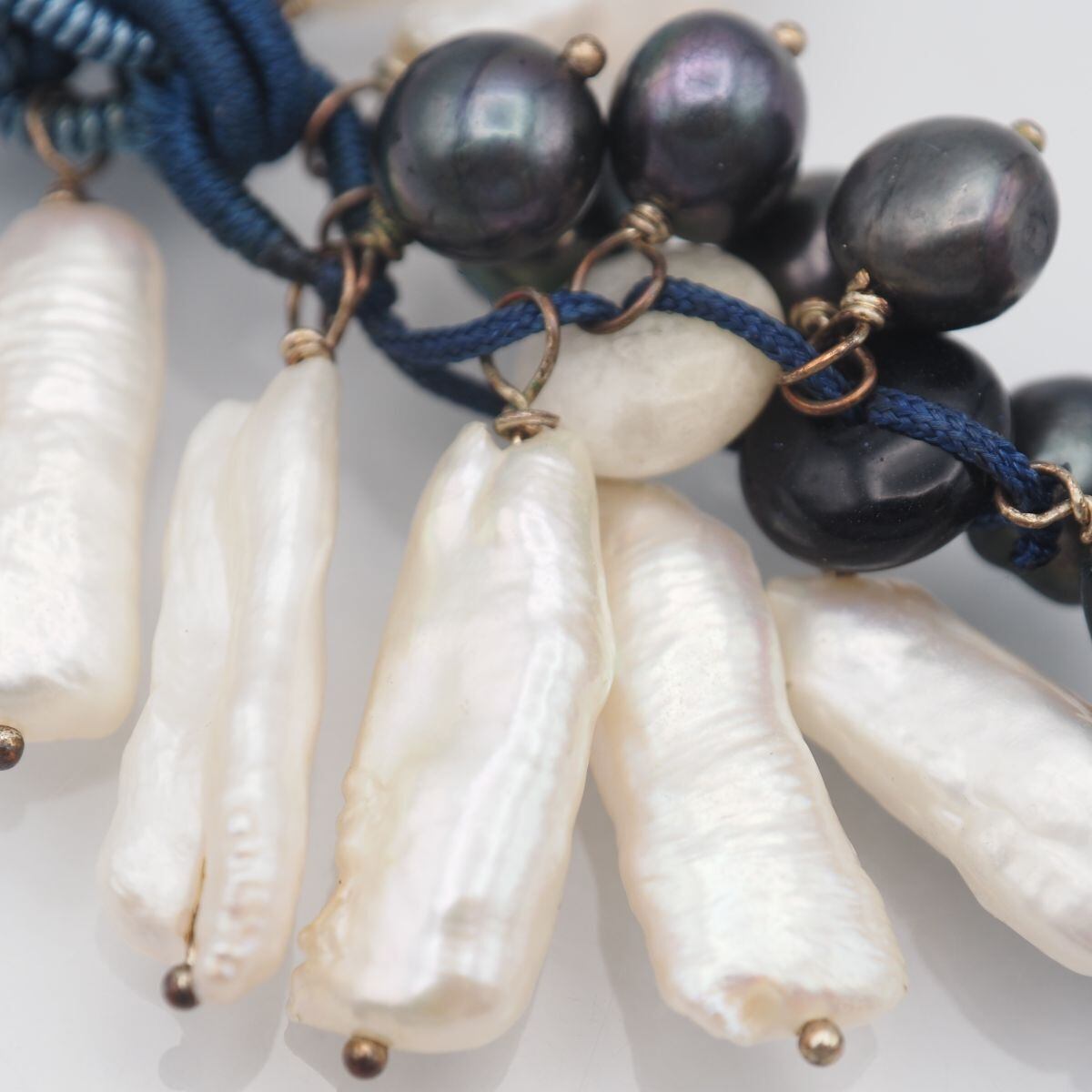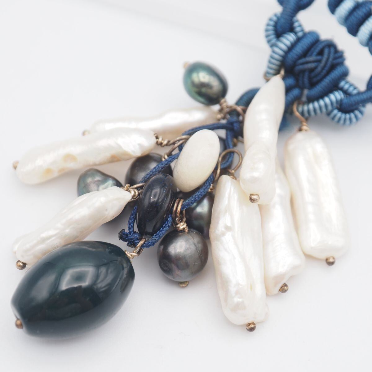 B025 バロックパール 真珠 天然石 ネックレス 紐 ミックスカラー デザイン シルバー アンティーク 6月誕生石