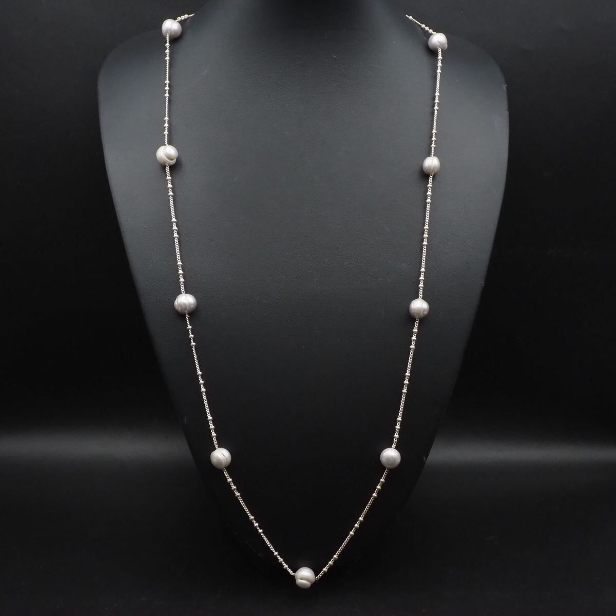 C369 バロックパール 真珠 ネックレス グレー系カラー チェーン デザイン シルバー 6月誕生石