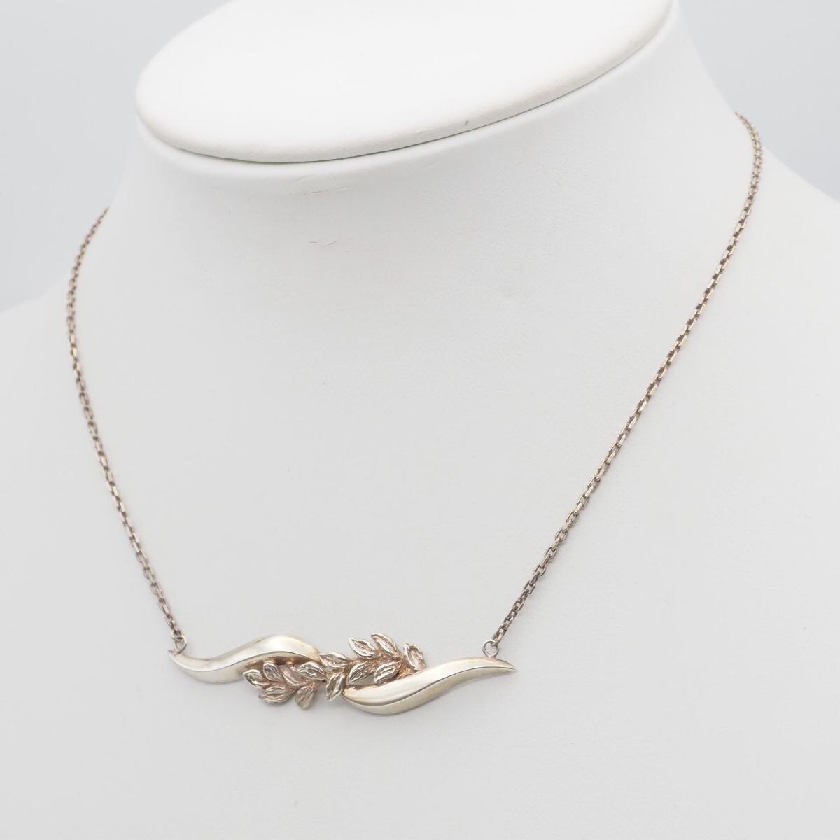 C426 ヴィンテージ S925刻印 ネックレス リーフ デザイン シルバー
