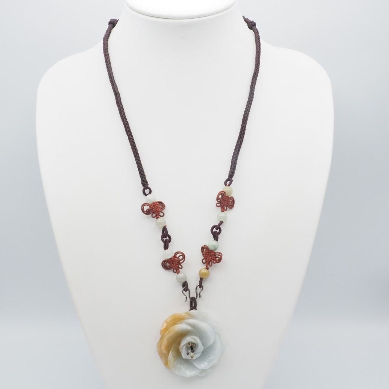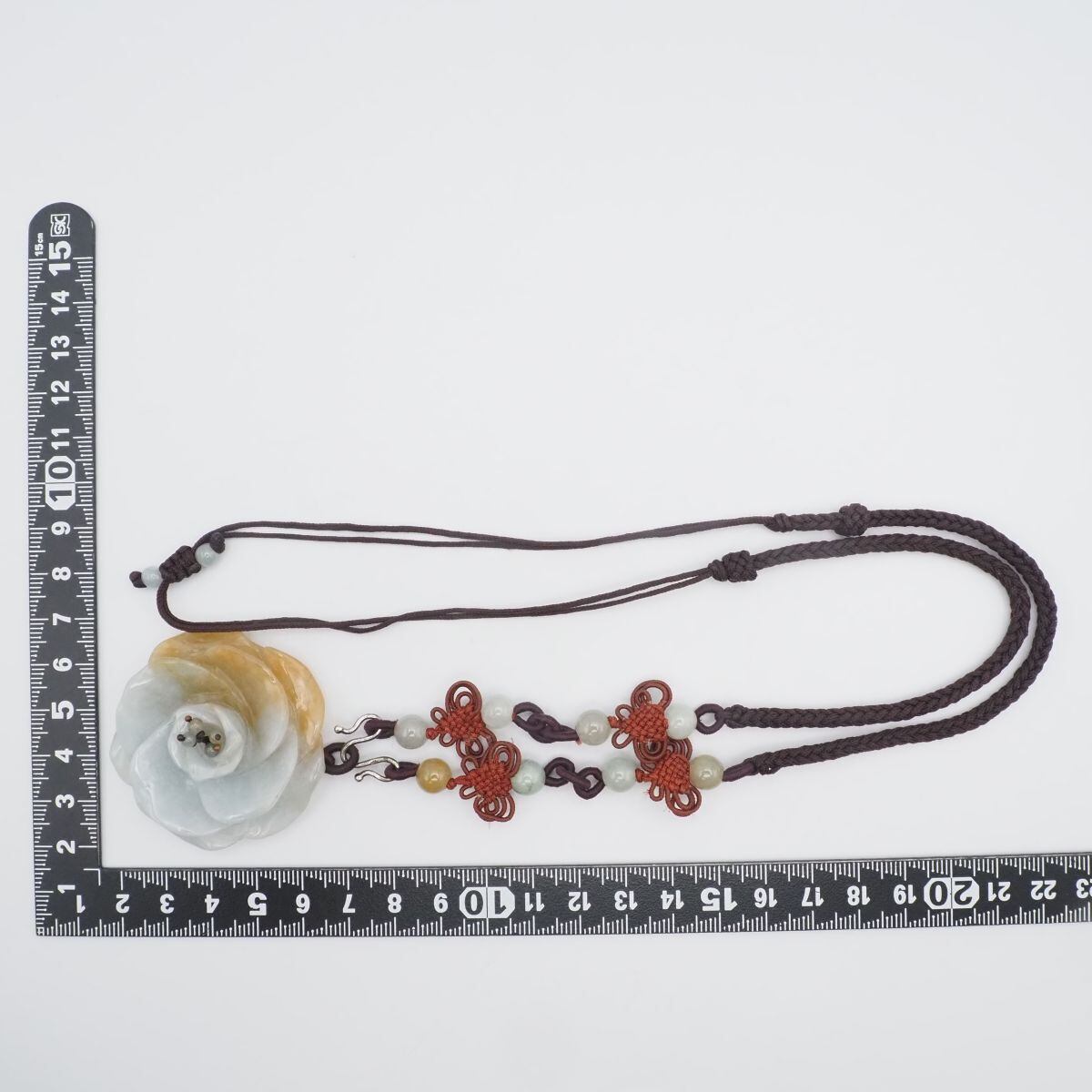 F170 翡翠? ヒスイ? 925刻印 ペンダント ネックレス 花彫刻 紐 デザイン シルバー アンティーク