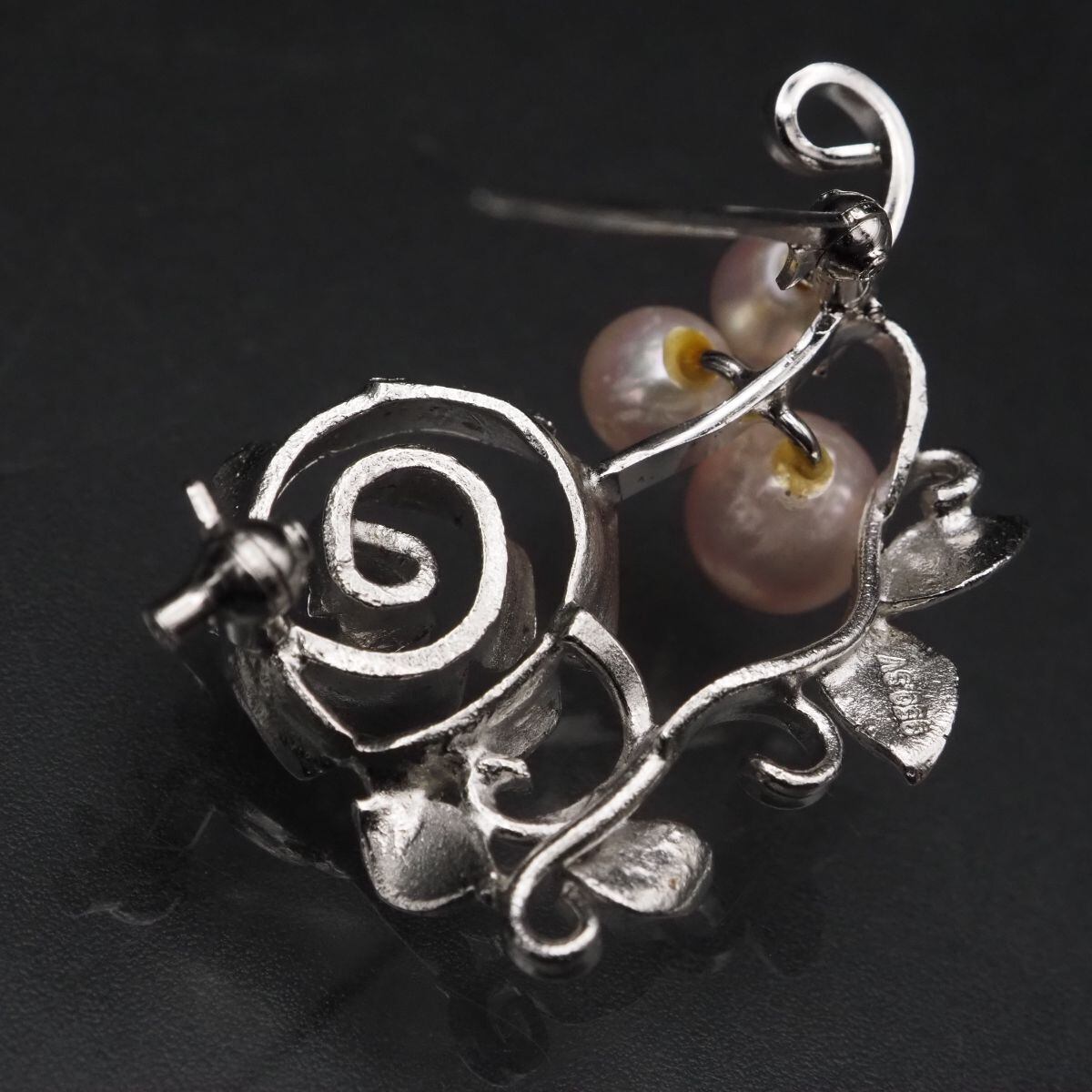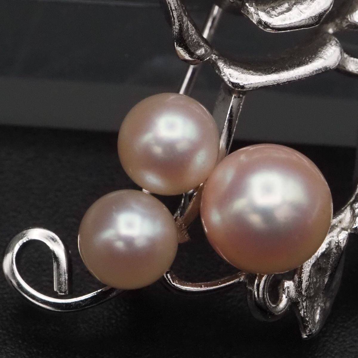 F619 淡水真珠 パール 950.SV刻印 ブローチ 薔薇 バラ ローズ ピンク系カラー デザイン シルバー コサージュ 6月誕生石