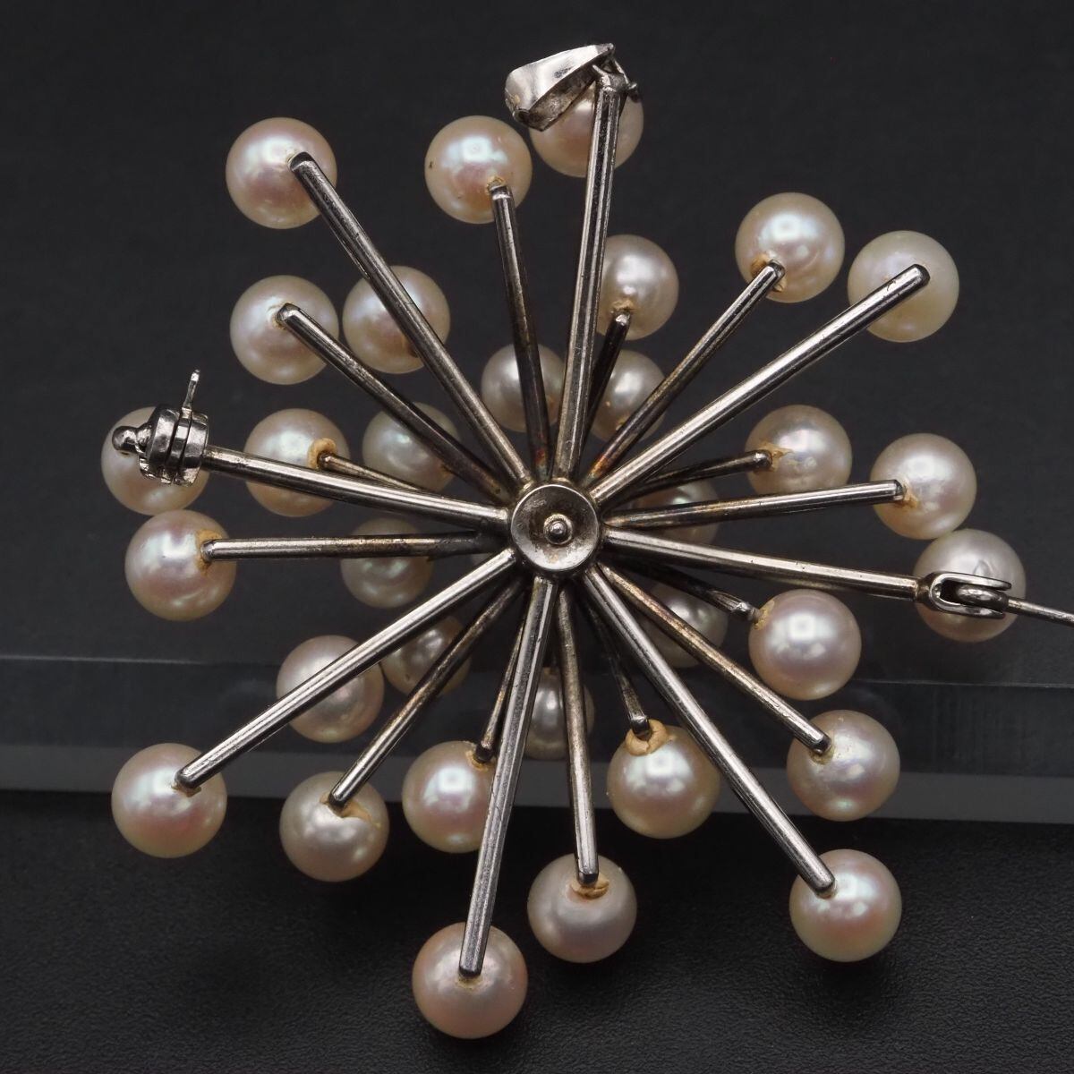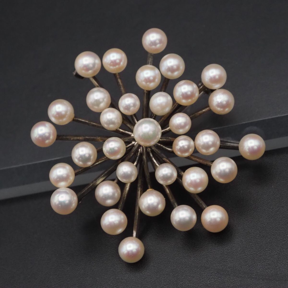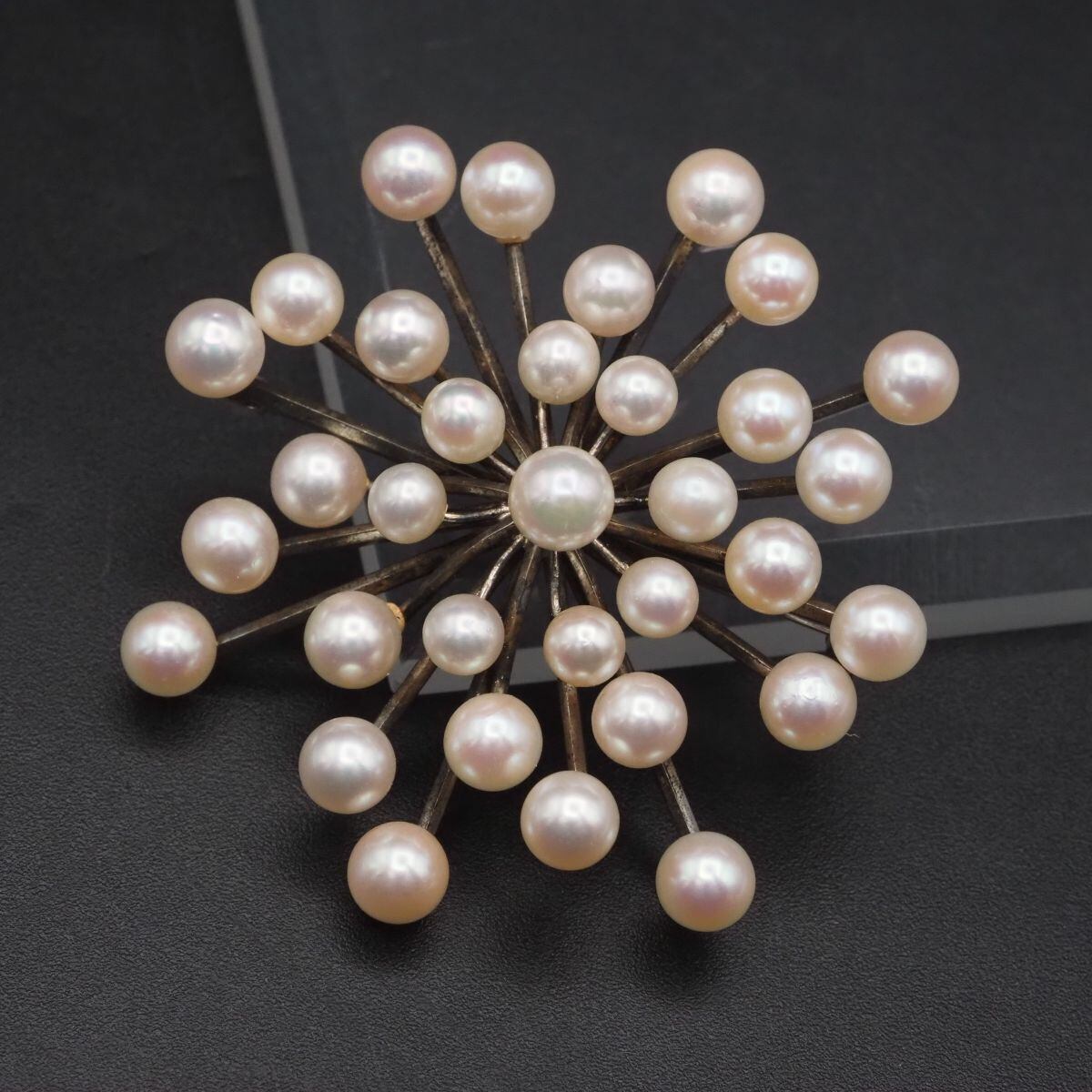 G176 本真珠 5.1-6.4mm33珠 パール STERLING刻印 ブローチ デザイン シルバー コサージュ 6月誕生石