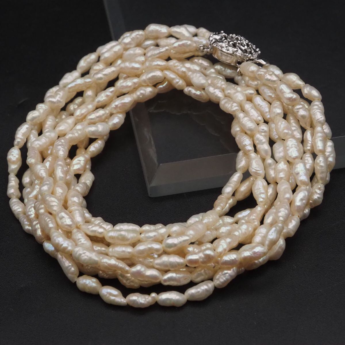 G281 淡水真珠 パール GSILVER刻印 ネックレス 5連 デザイン シルバー 6月誕生石