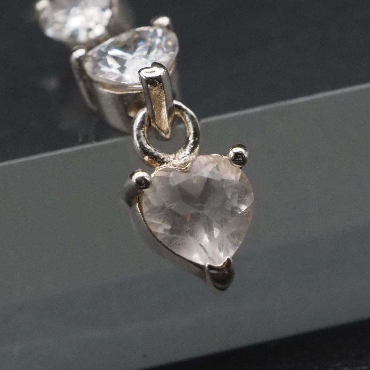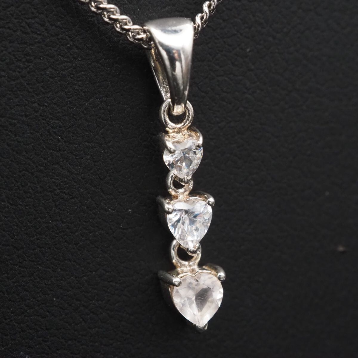 C181 ダイヤモンド風 925刻印 ペンダント トップ ハート 3連 デザイン シルバー チャーム ヘッド