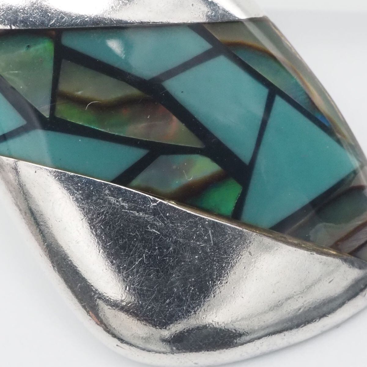 C277 ヴィンテージ 925刻印 ペンダント トップ 螺鈿 カラーストーン風 インレイ デザイン シルバー チャーム ヘッド