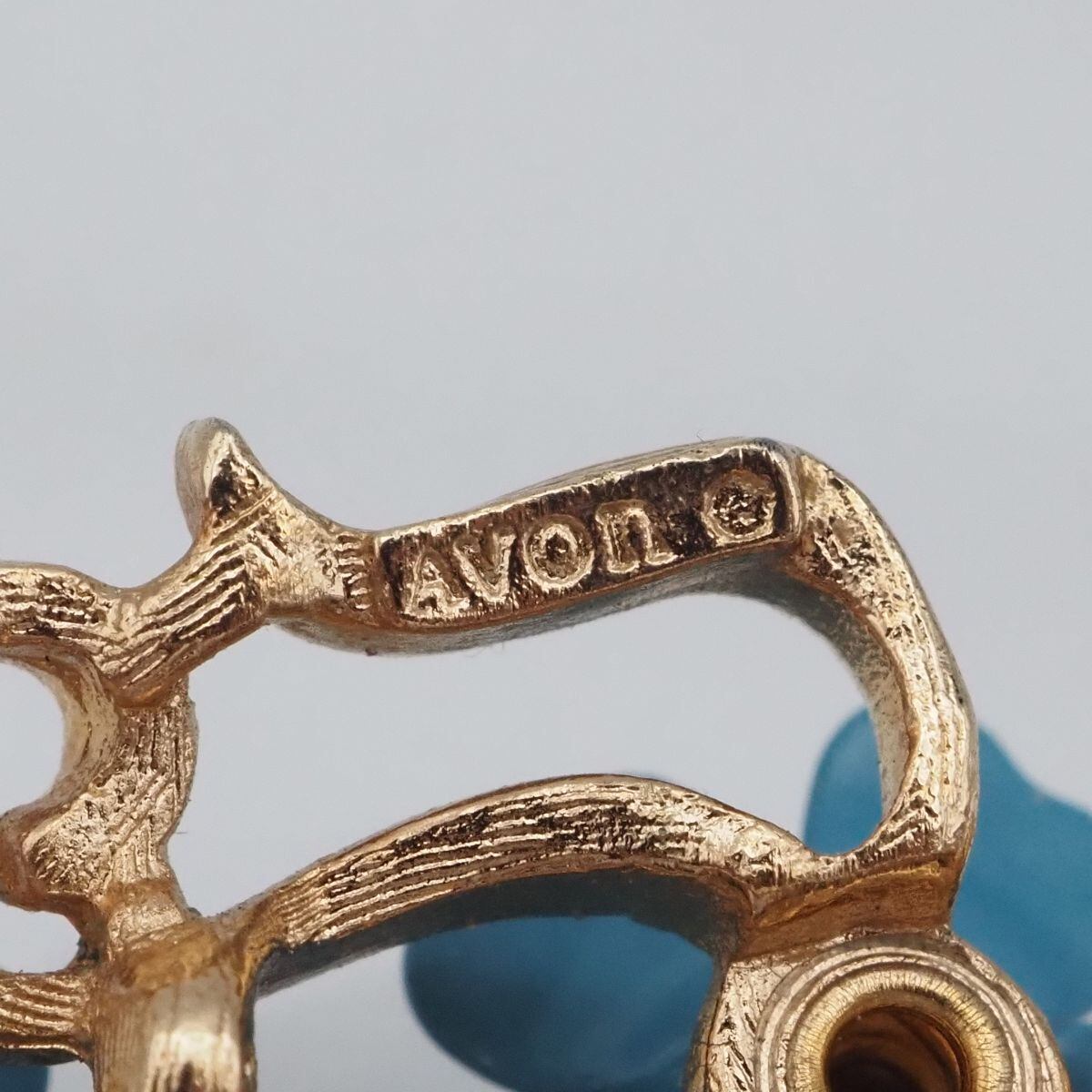 F316 AVON エイボン ブローチ フラワー ブルーストーン風 ゴールド デザイン