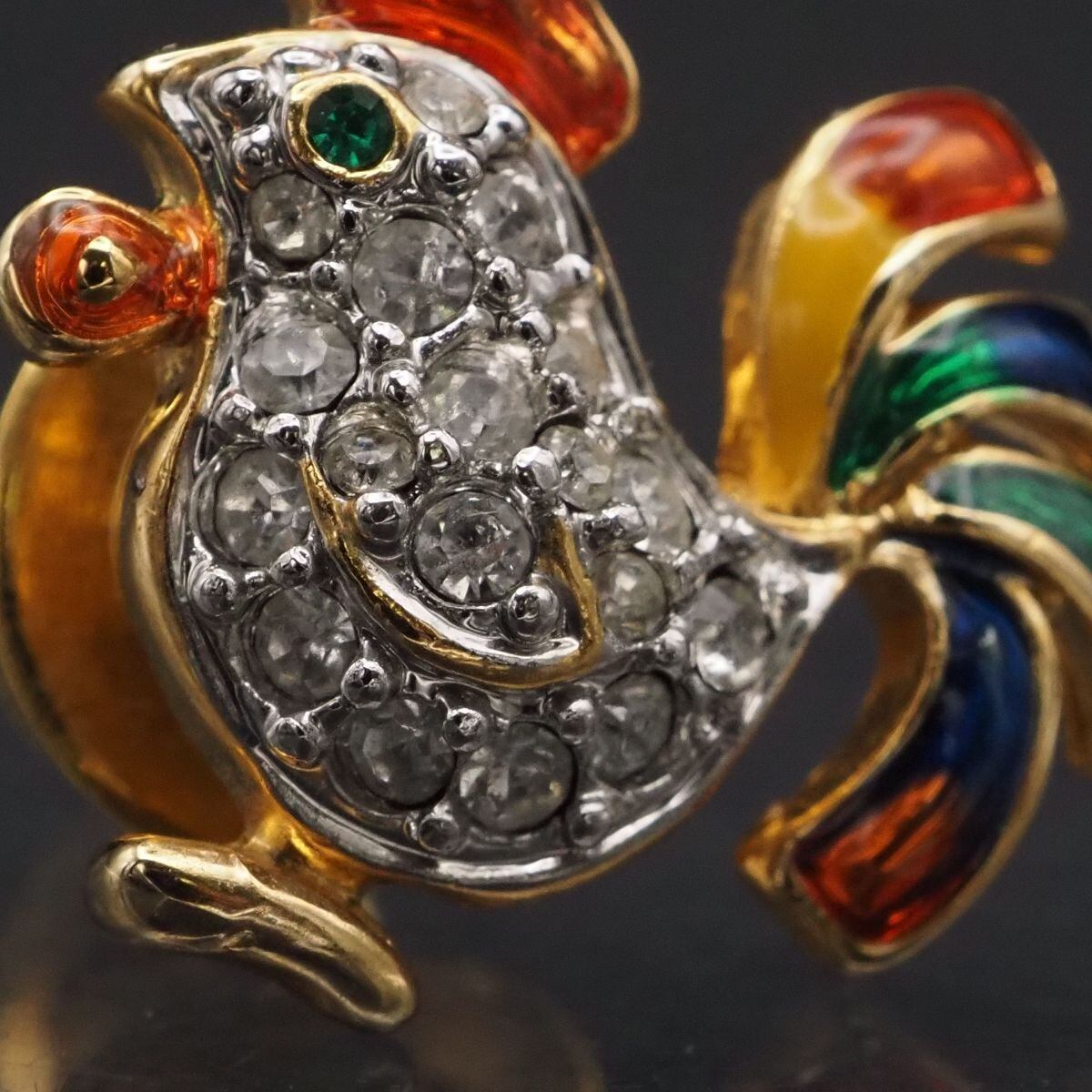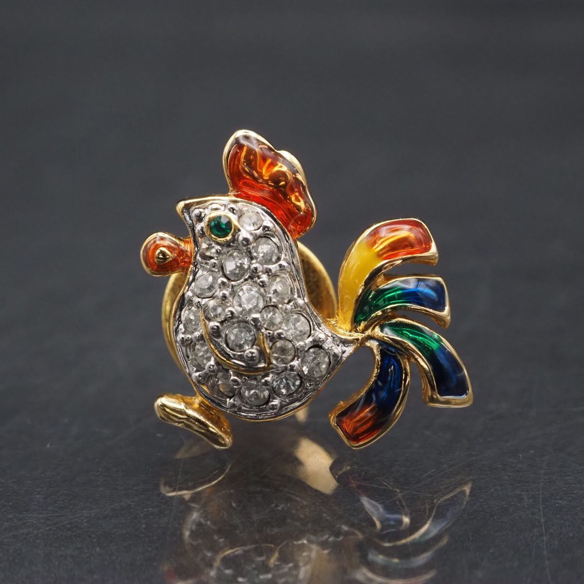 F357 ピンブローチ ニワトリ ラインストーン パヴェ マルチカラー エナメル ゴールド デザイン ラペルピン コスチュームジュエリー