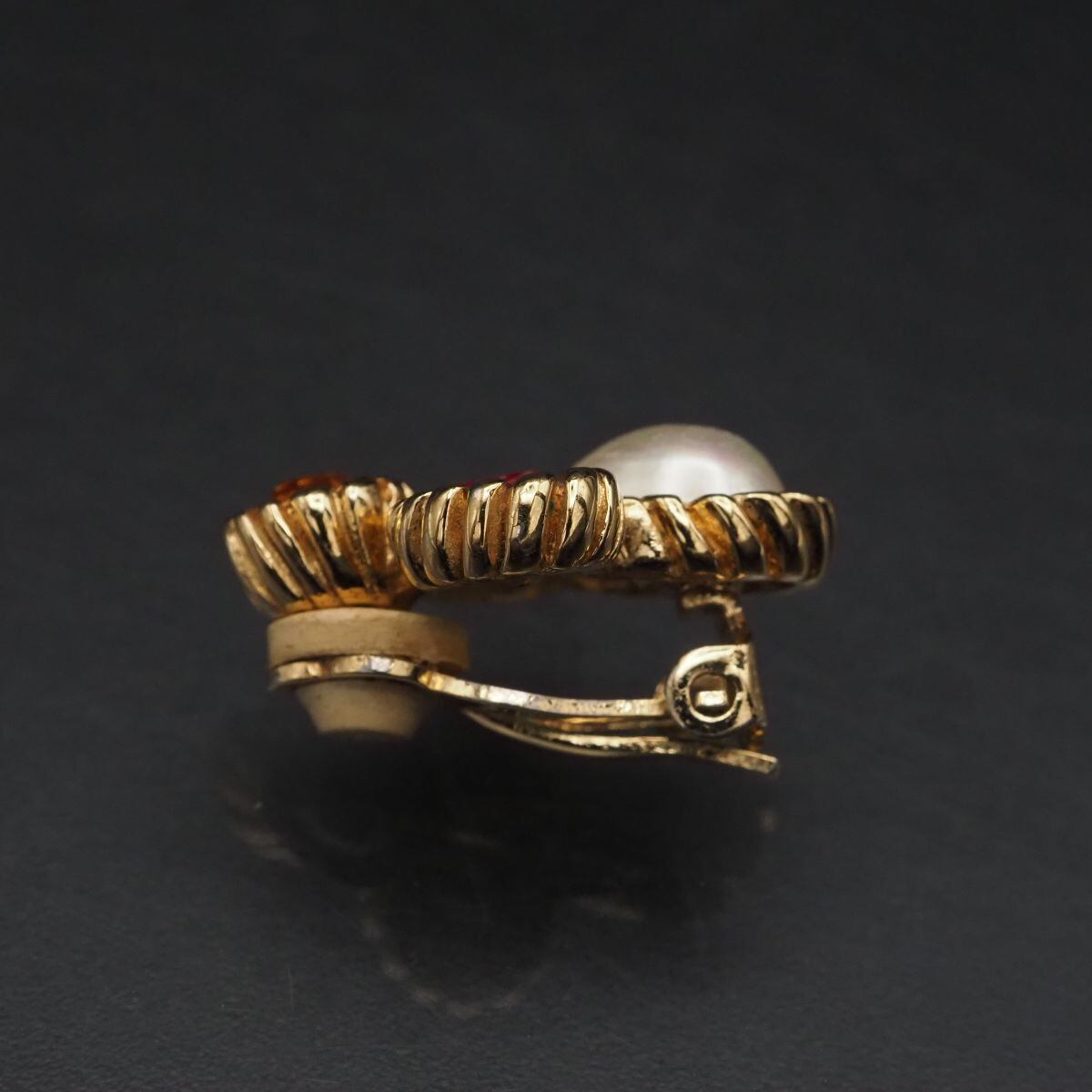 F840 イヤリング 片耳のみ フェイクパール カラーストーン風 ゴールド デザイン コスチュームジュエリー