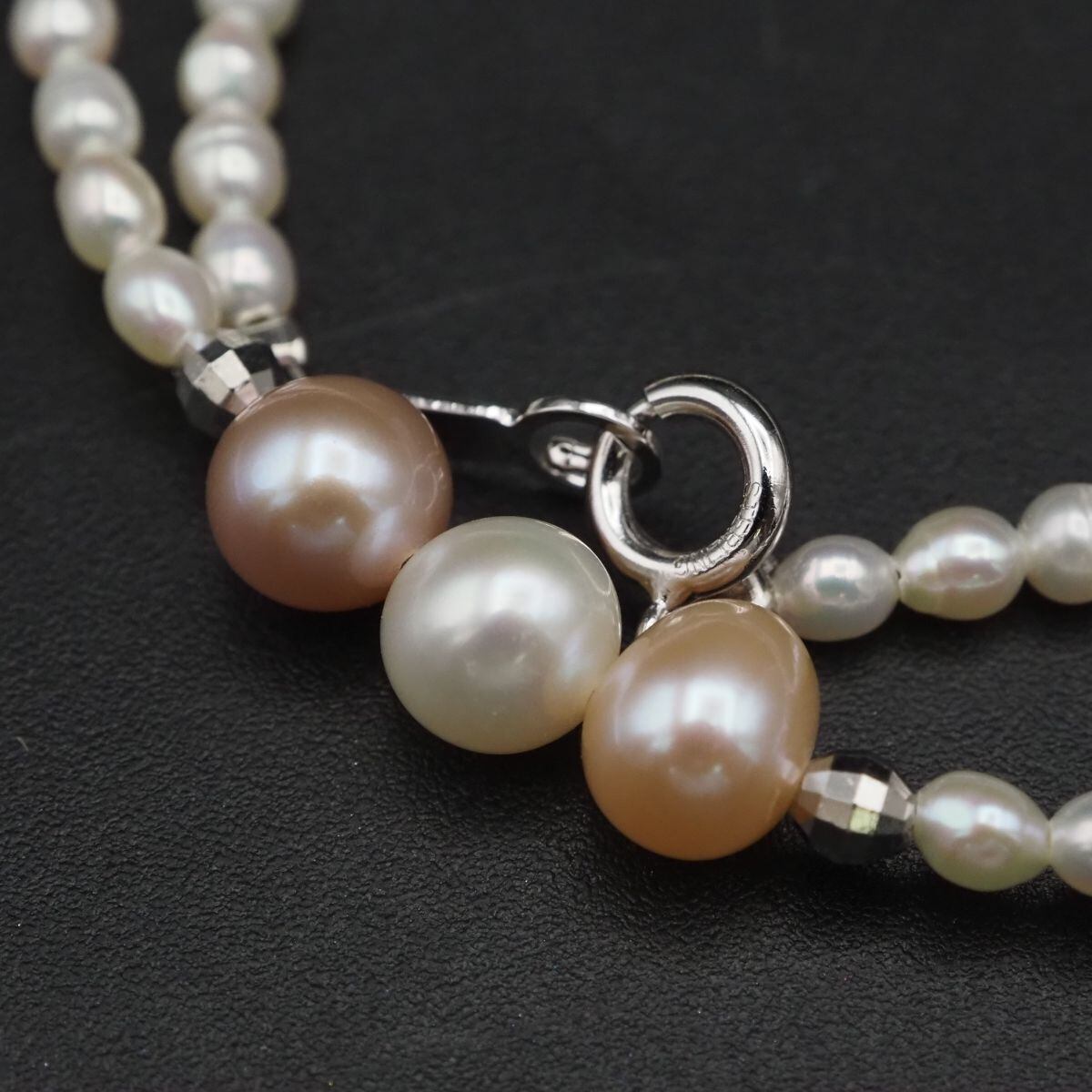 F816 淡水真珠 パール STERLING SILVER925刻印 ネックレス ミックスカラー デザイン シルバー 6月誕生石