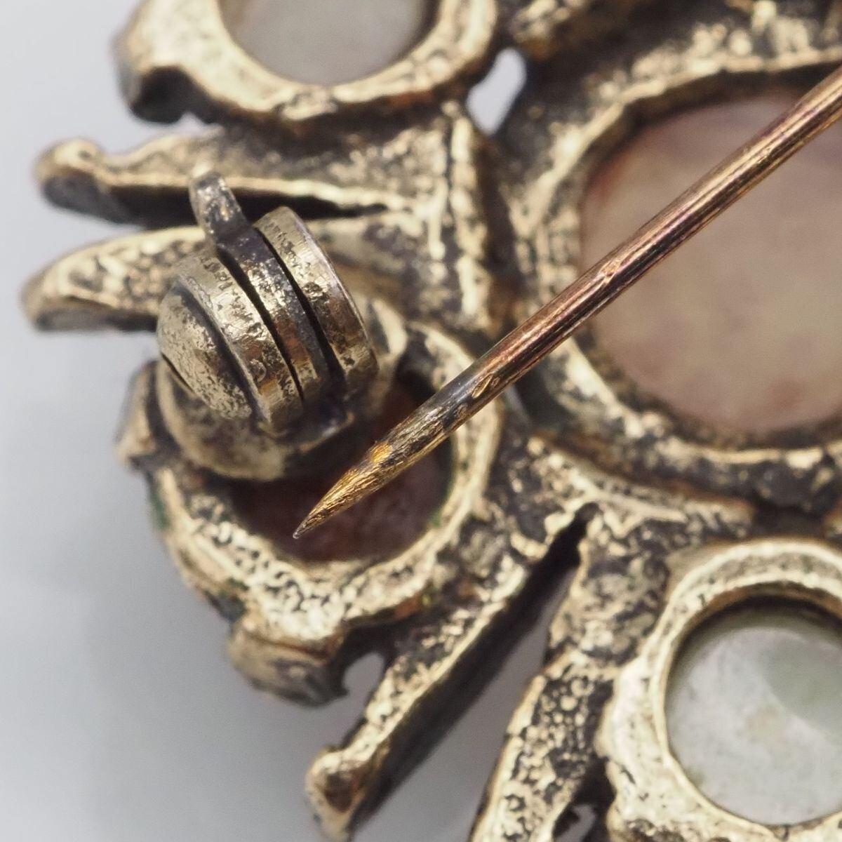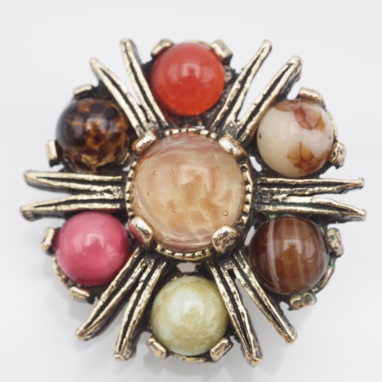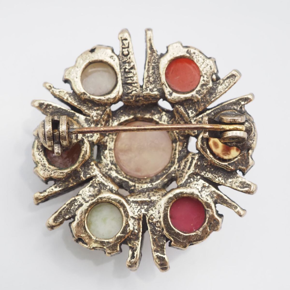 F686 イギリス ヴィンテージ MIRACLE ミラクル ブローチ 天然石風 マルチカラー ゴールド デザイン 英国 アンティーク