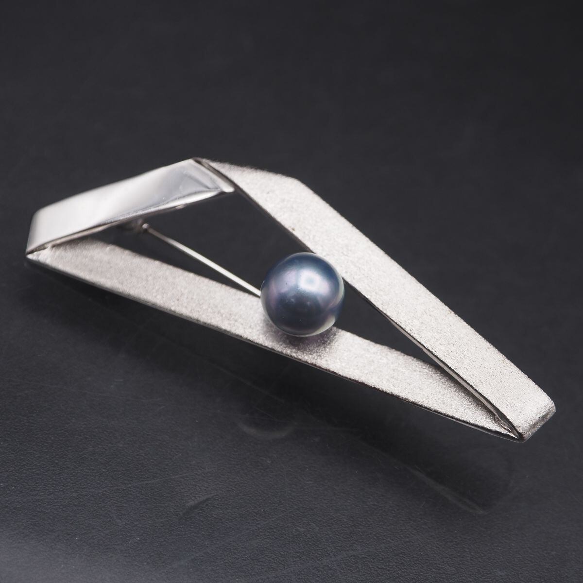 C022 本真珠 8.3mm珠 パール SILVER刻印 ブローチ ブルー系カラー デザイン シルバー コサージュ 6月誕生石