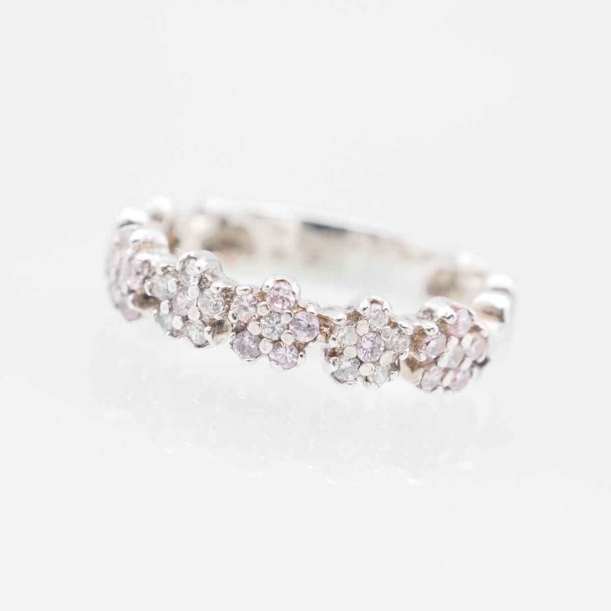 F299 ピンクストーン ダイヤモンド風 SV CP刻印 リング フラワー デザイン シルバー 指輪 8号