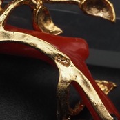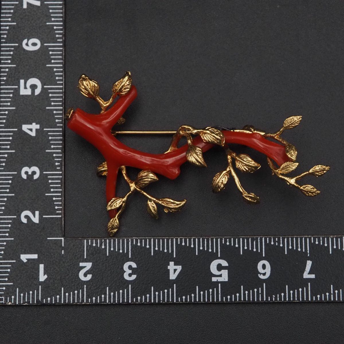 F689 赤珊瑚 サンゴ 925刻印 ブローチ リーフ ゴールド デザイン シルバー 3月誕生石