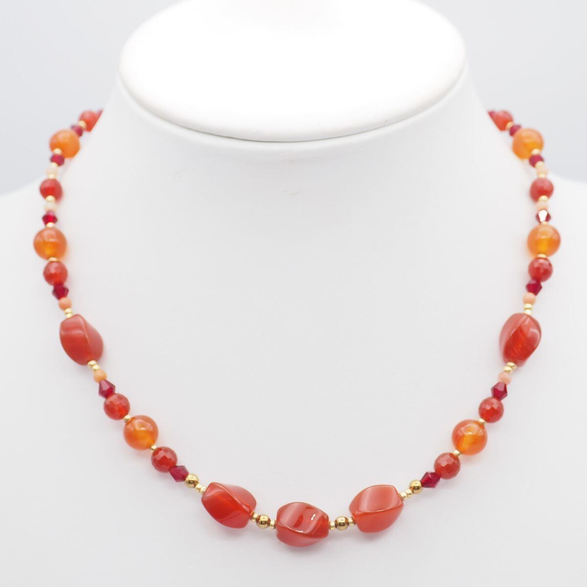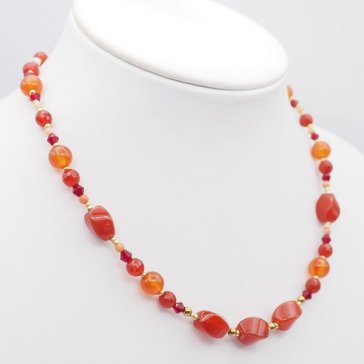 F385 レッドアゲート 赤瑪瑙 メノウ ネックレス ゴールド デザイン シルバー
