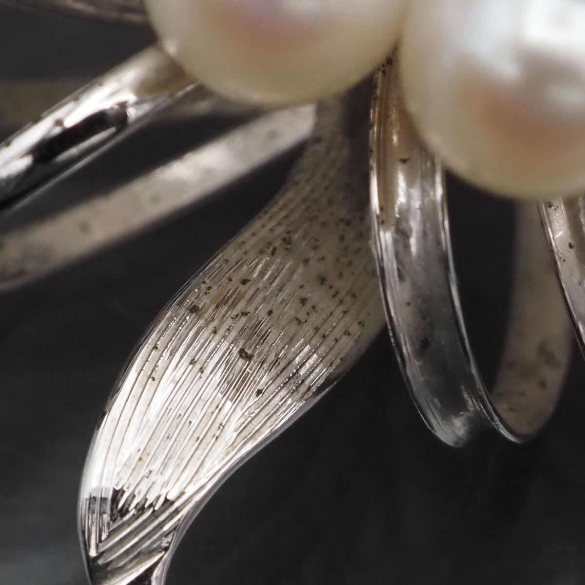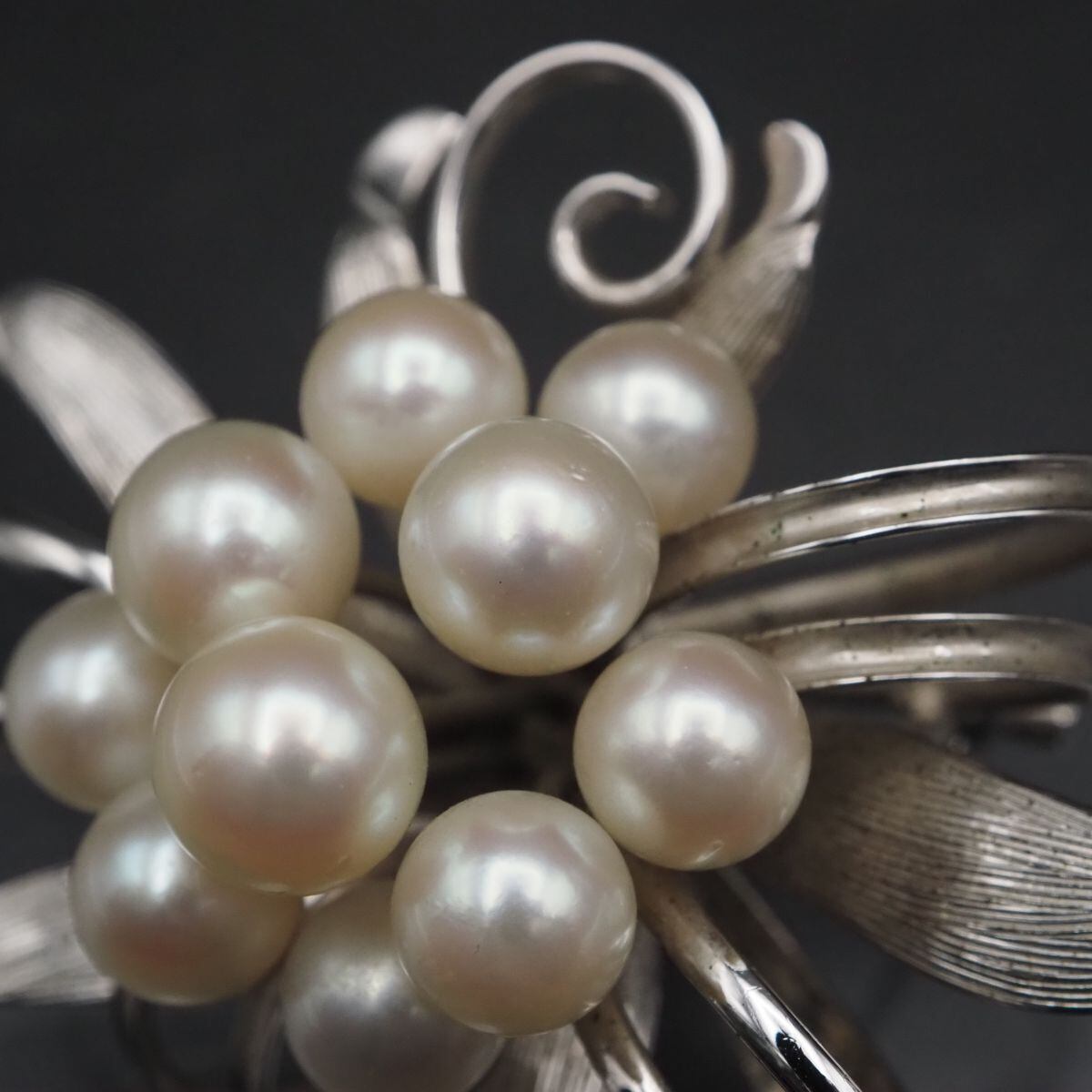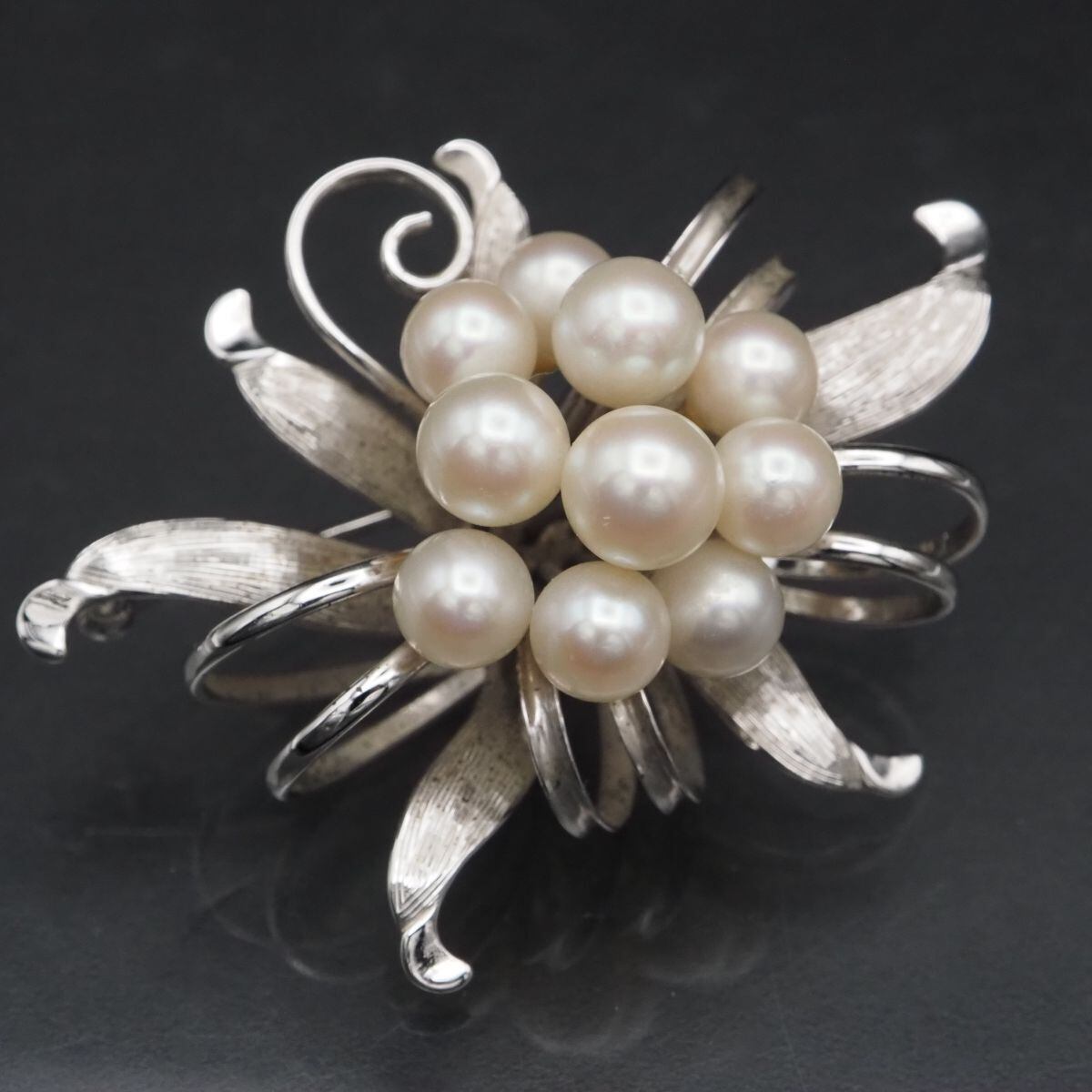 C731 本真珠 6.4-7.4mm10珠 パール STERLING刻印 ブローチ フラワー デザイン シルバー コサージュ 6月誕生石
