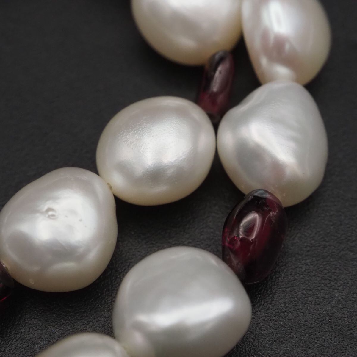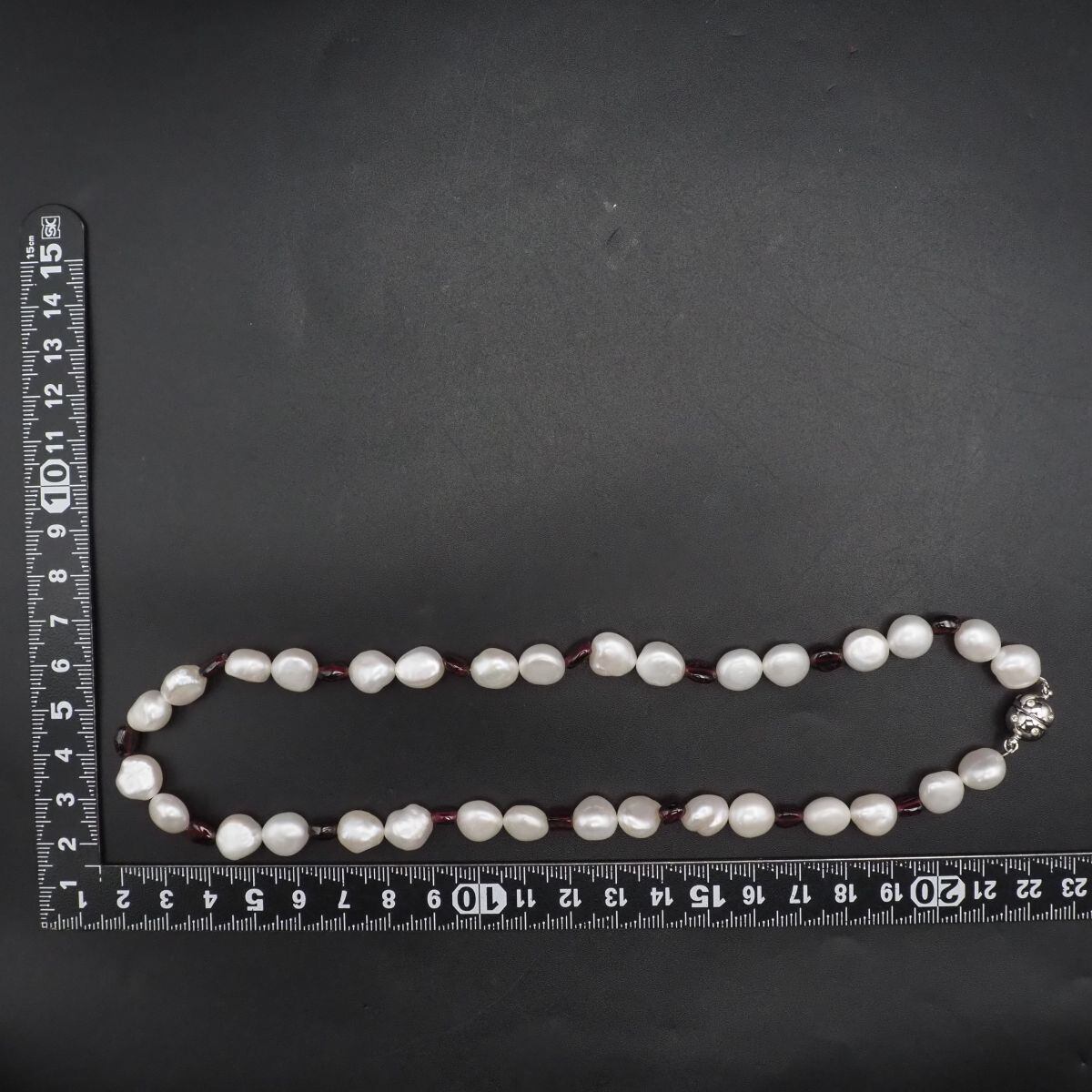 F462 淡水真珠 パール ガーネット ネックレス デザイン シルバー 1月 6月誕生石