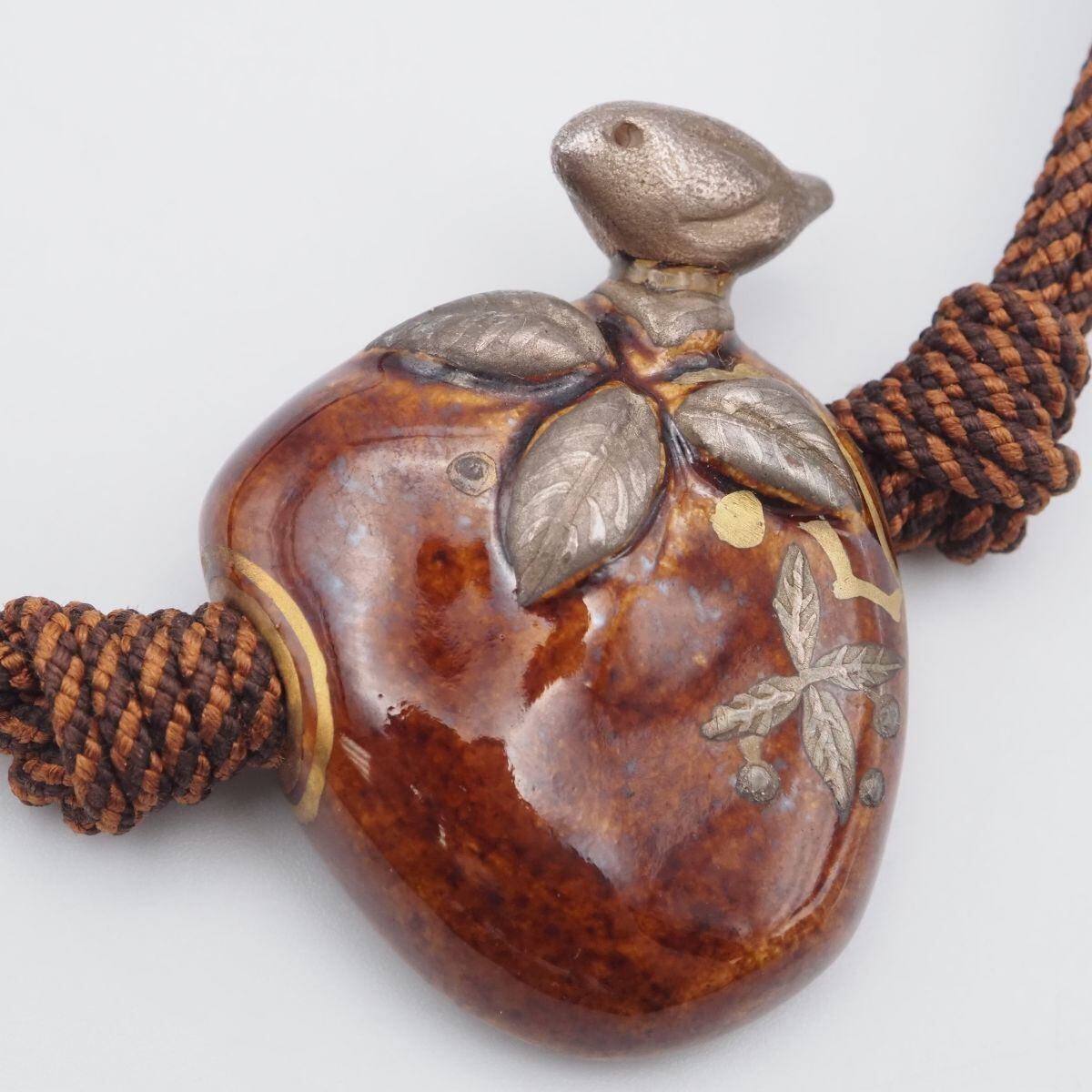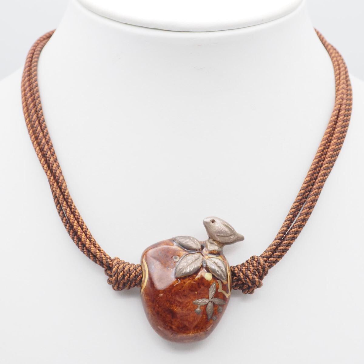 F763 作家物 耀作 ネックレス 陶器 バード 5連 紐 デザイン シルバー