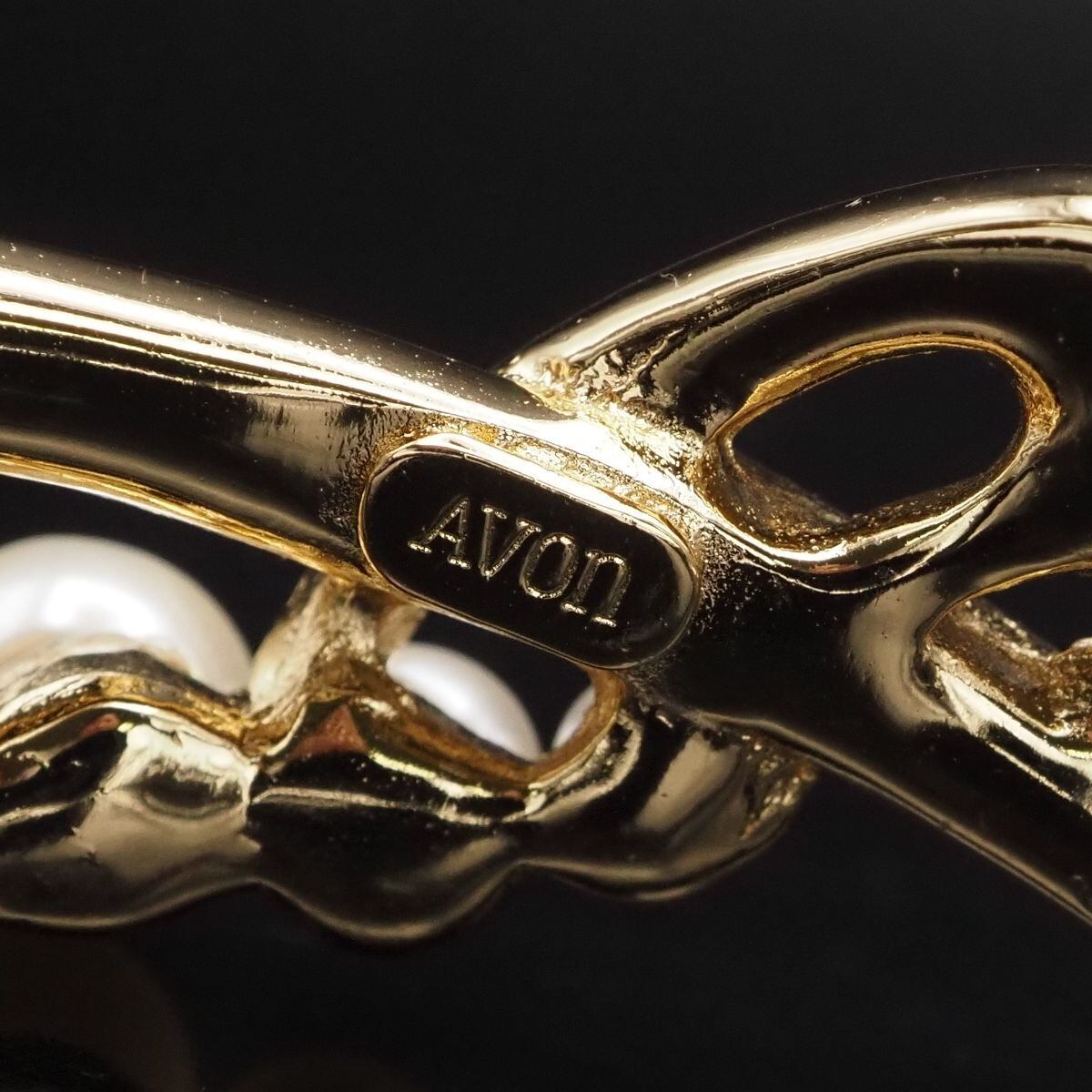 F244 AVON エイボン ブローチ フェイクパール ラインストーン ゴールド デザイン