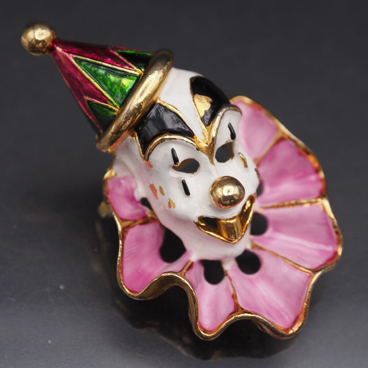 C129 ブローチ ピエロ マルチカラー エナメル ゴールド デザイン コスチュームジュエリー