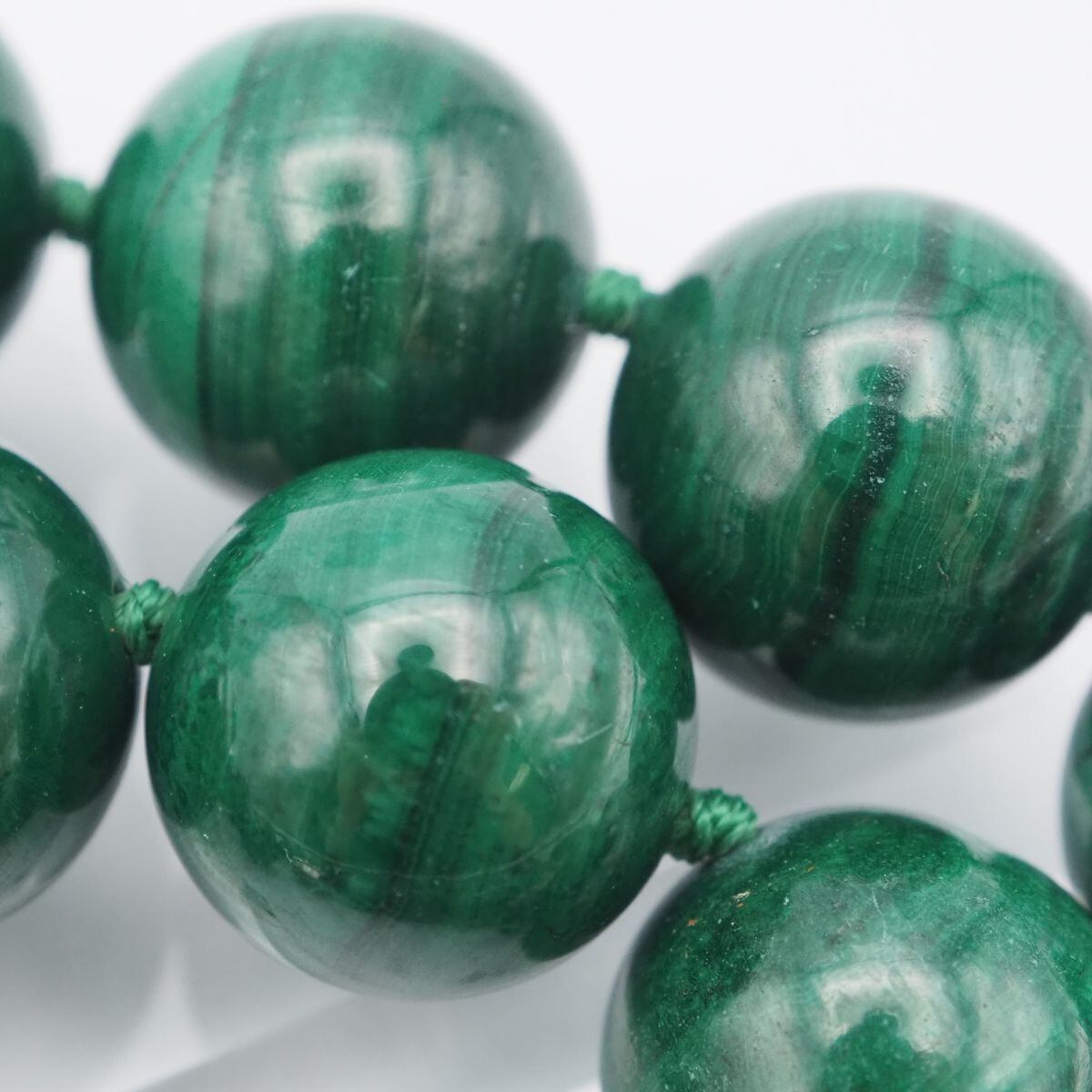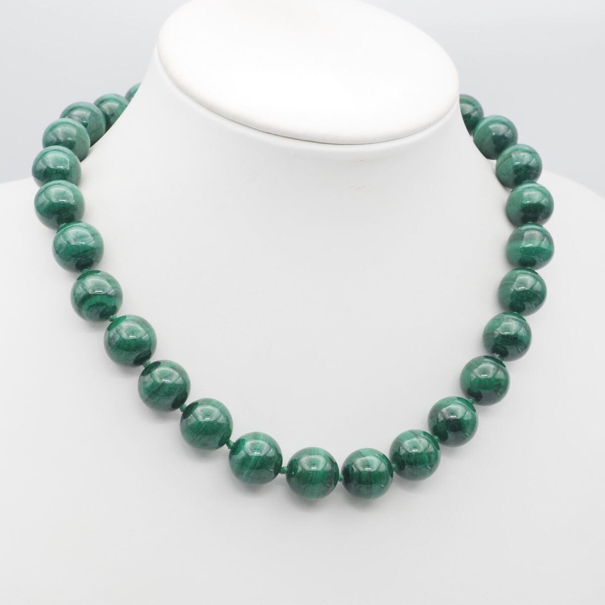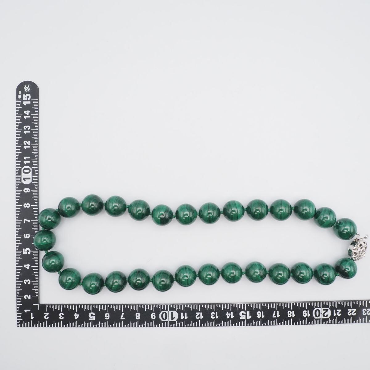 G300 マラカイト 孔雀石 14mm珠 SILVER刻印 ネックレス シルバー デザイン