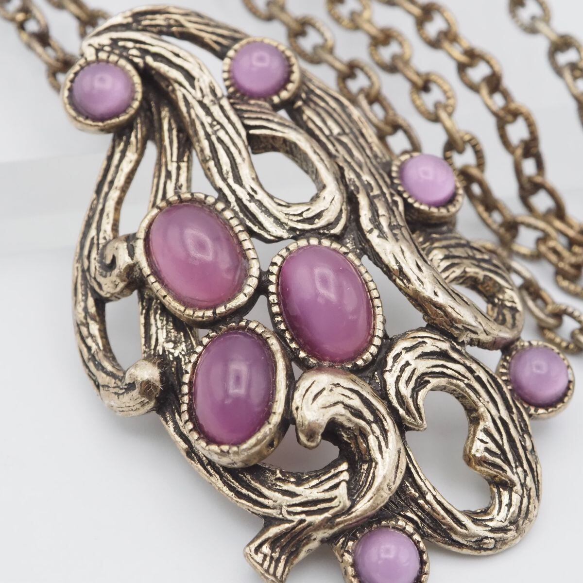 G057 イギリス ヴィンテージ MIRACLE ミラクル ペンダント ネックレス 天然石風 ゴールド デザイン 英国 アンティーク