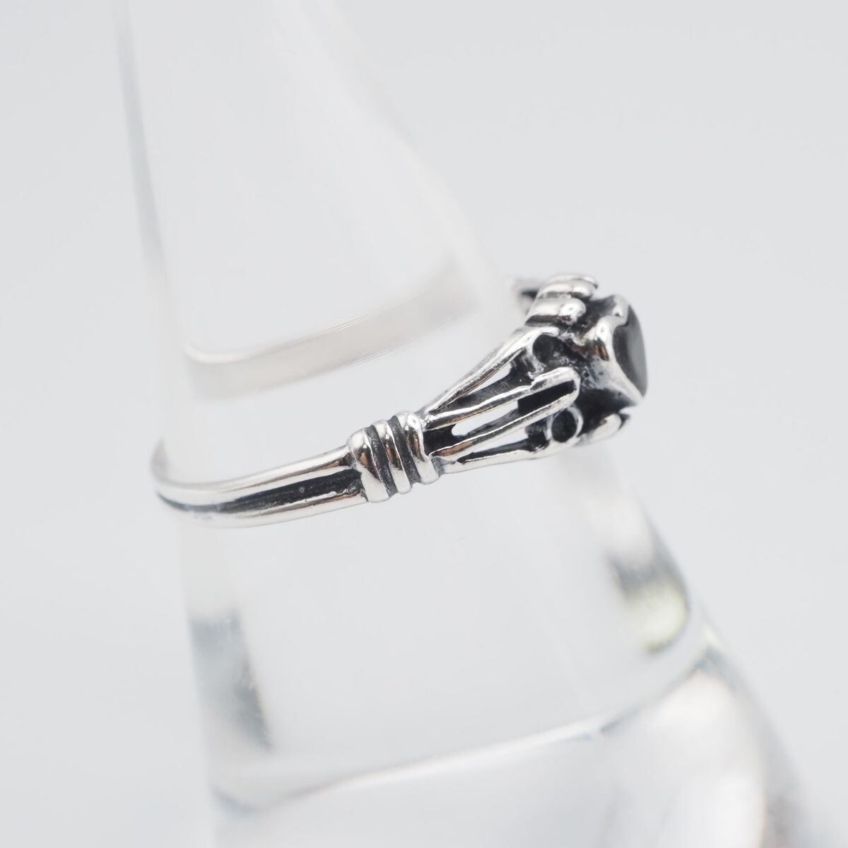 G016 オニキス風 925刻印 リング ハート インレイ デザイン シルバー 指輪 ヴィンテージ 12号