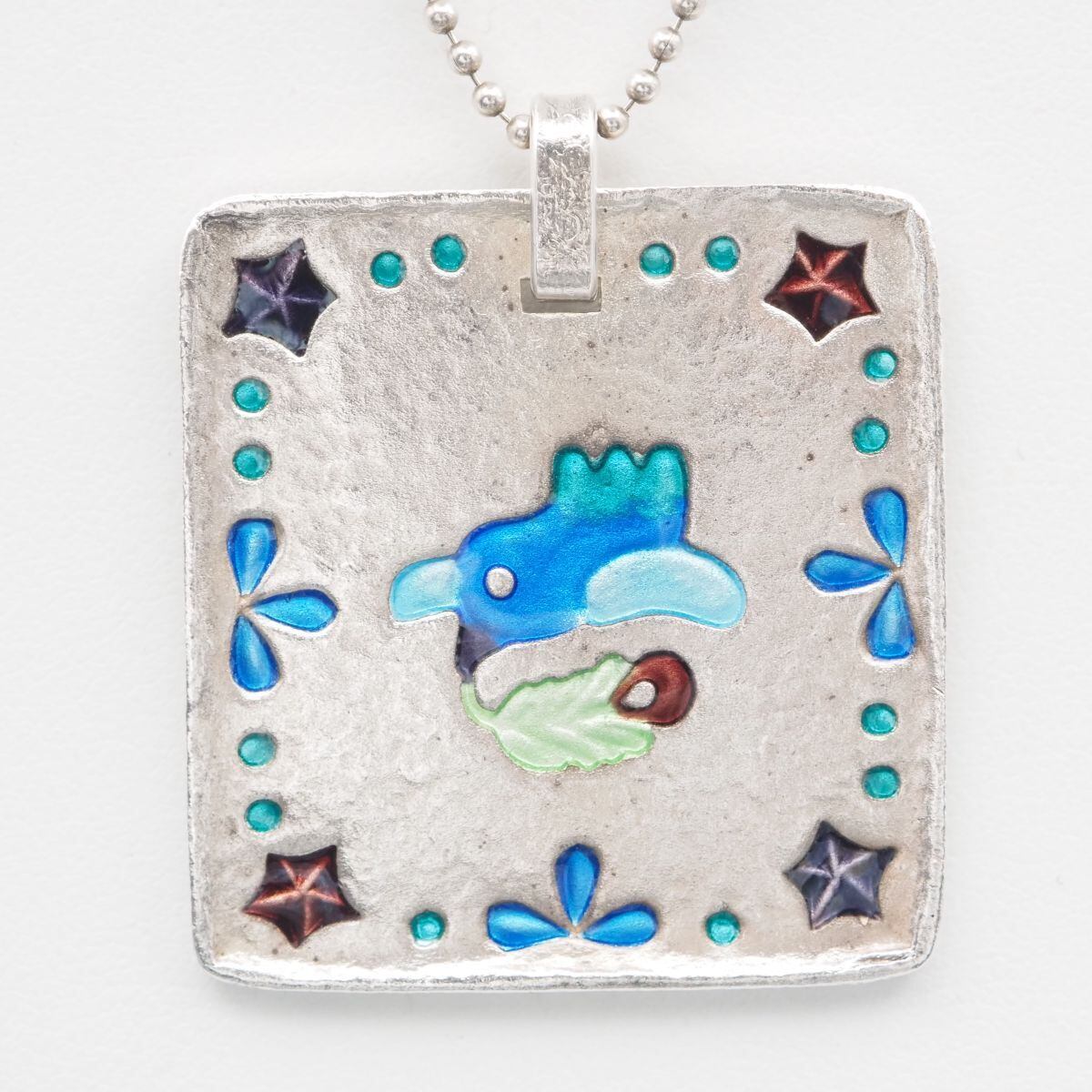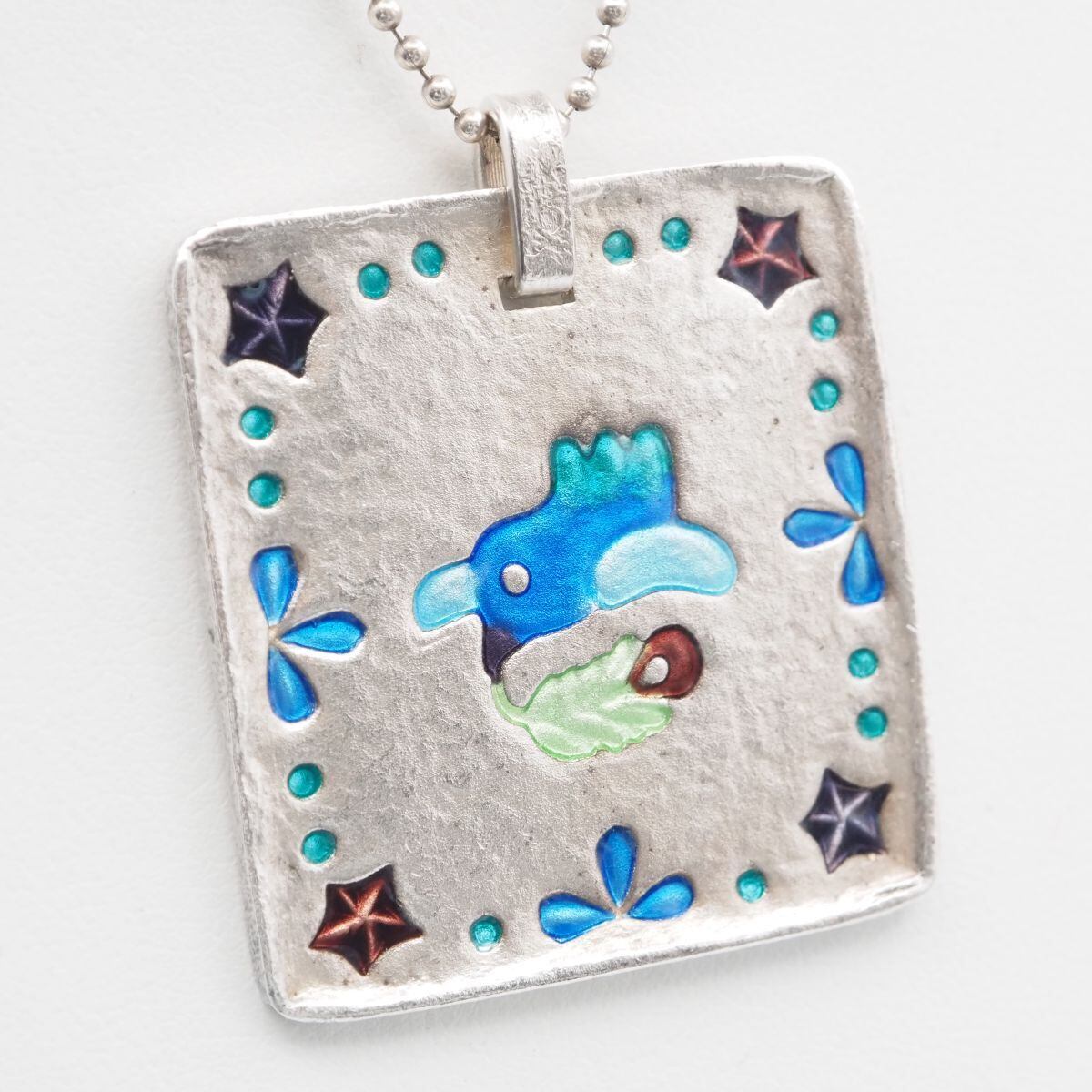 F956 七宝焼 作家物 鶴岡鉦次郎作 純銀 鶴刻印 ペンダント トップ デザイン シルバー チャーム ヘッド ヴィンテージ