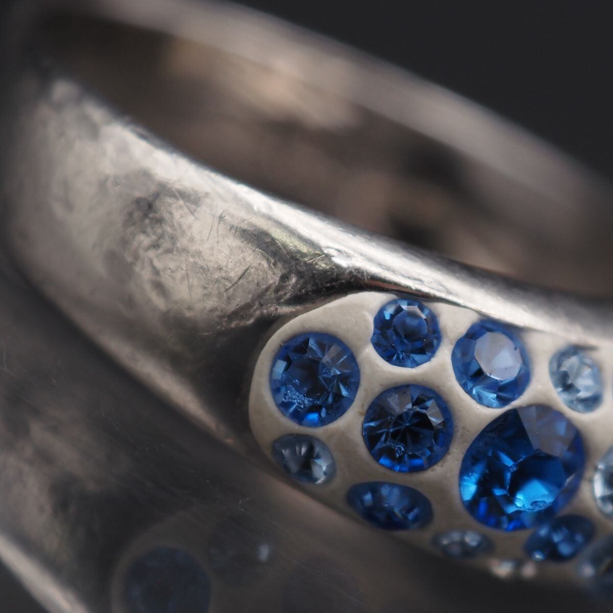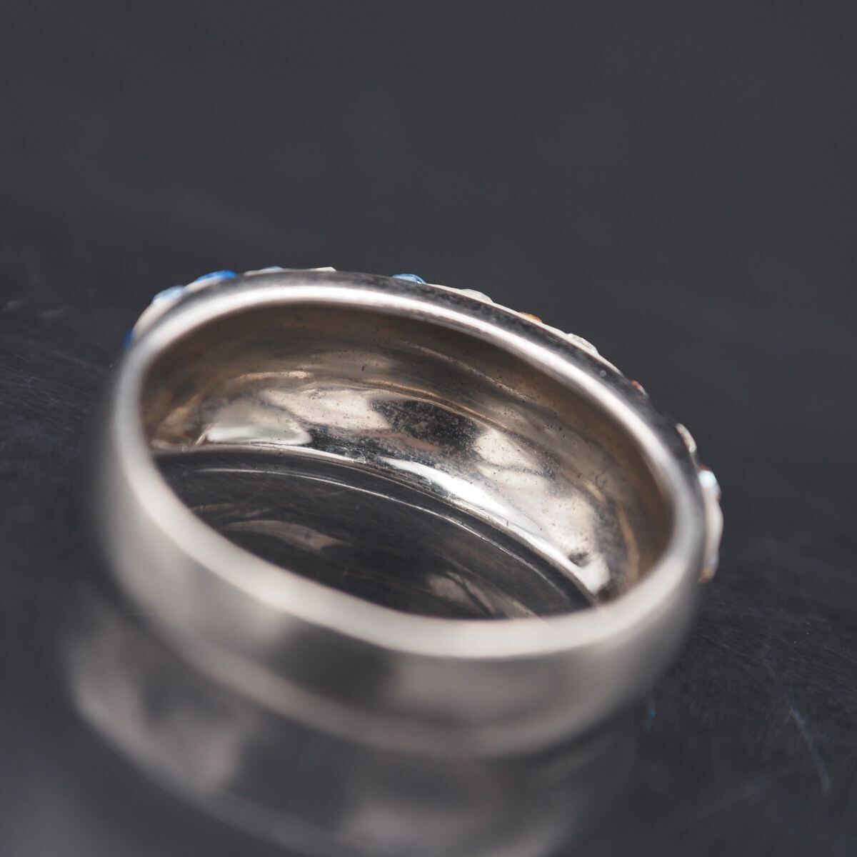G127 カラーガラス 925刻印 リング ラインストーン デザイン シルバー 指輪 13号