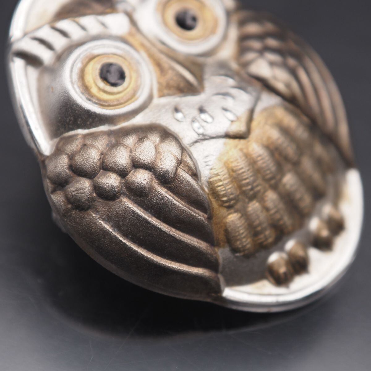 G180 作家物 TAKEHIKO 武比古作 SILVER925刻印 ブローチ 梟 フクロウ ゴールド デザイン シルバー
