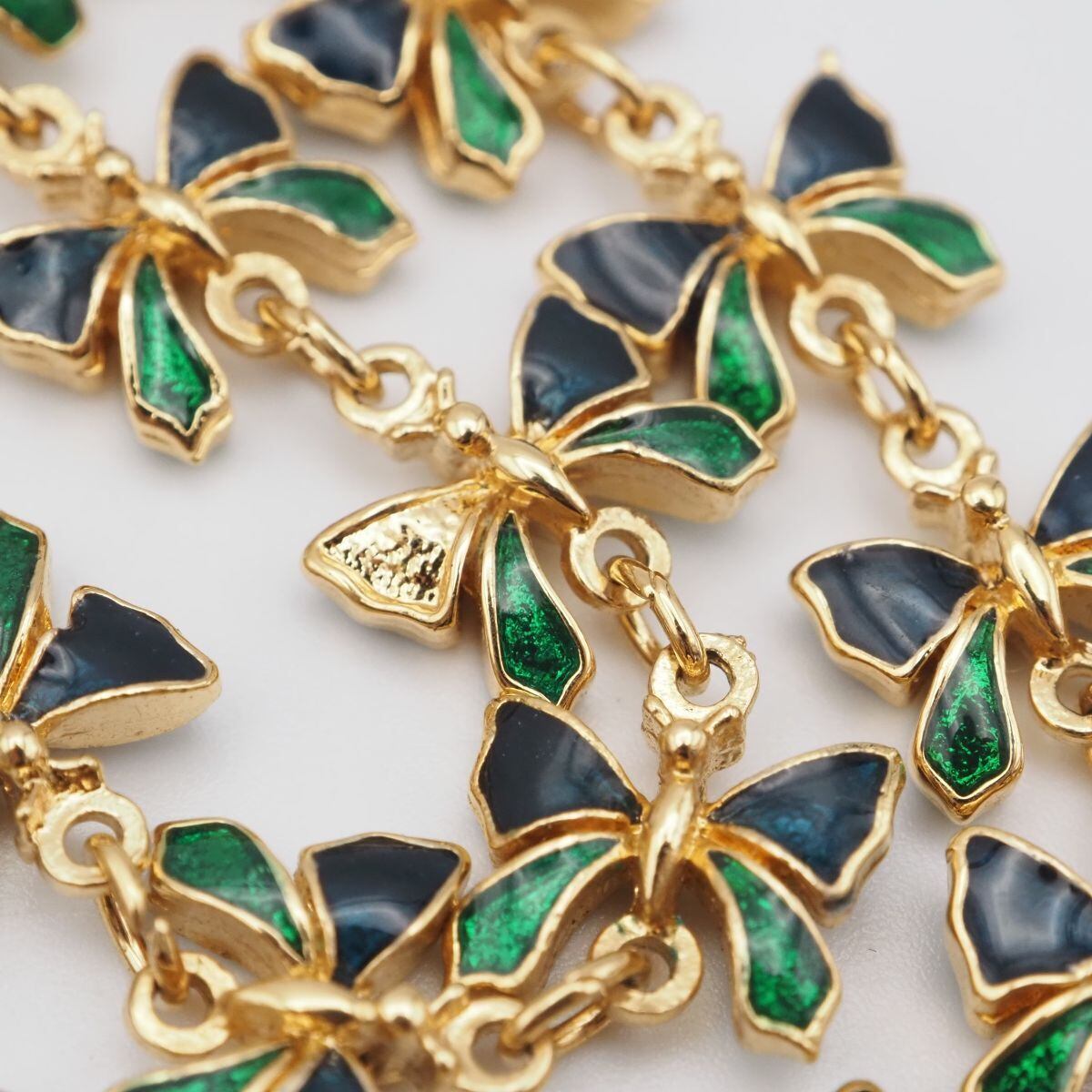 G007 ドーラン D'ORLAN ネックレス リボン グリーン ブルー エナメル ゴールド デザイン