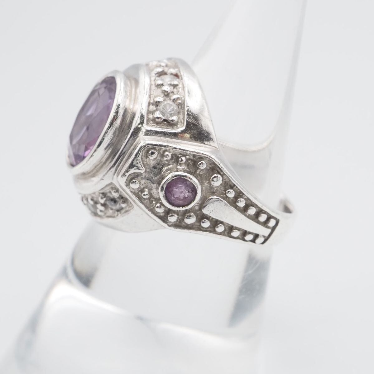 F973 アメジスト ダイヤモンド風 SV925刻印 リング デザイン シルバー 指輪 2月誕生石 13号