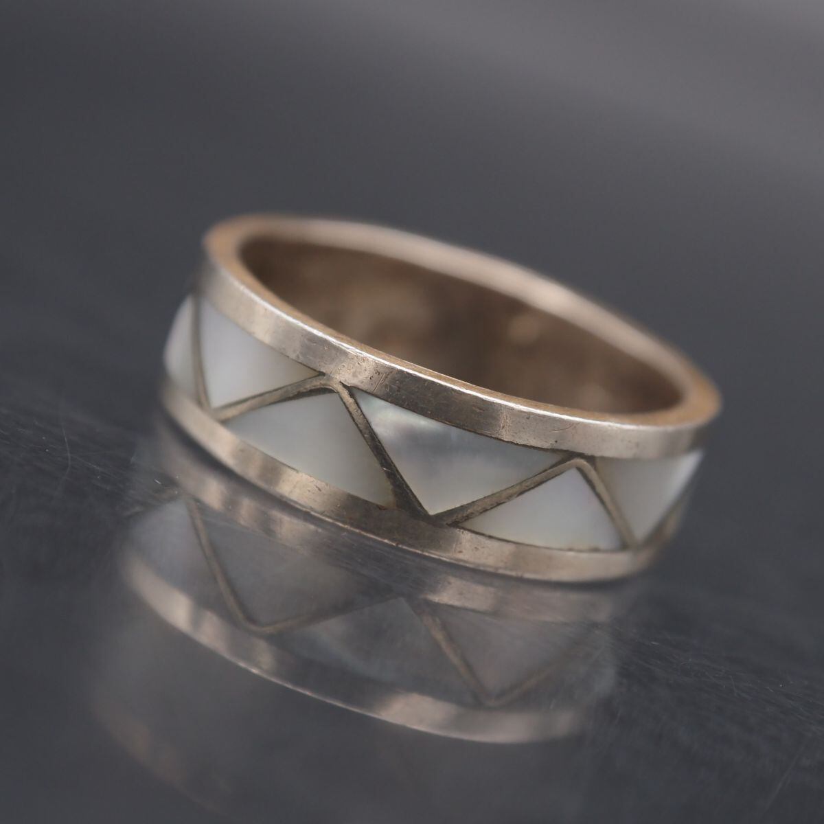 G134 シェル STERLING刻印 リング インレイ デザイン シルバー 指輪 ヴィンテージ 16号