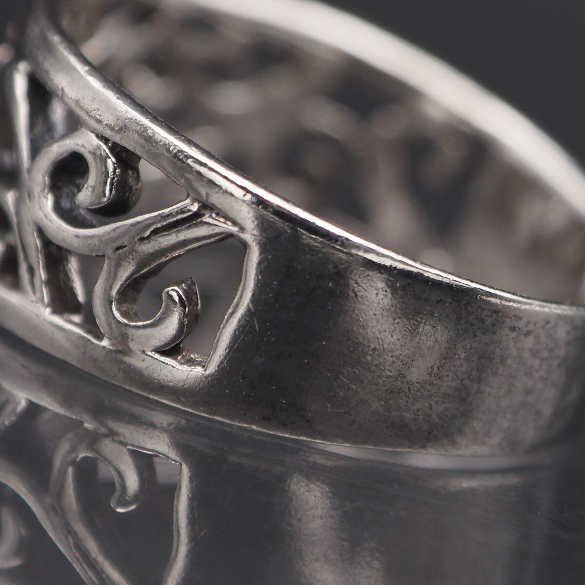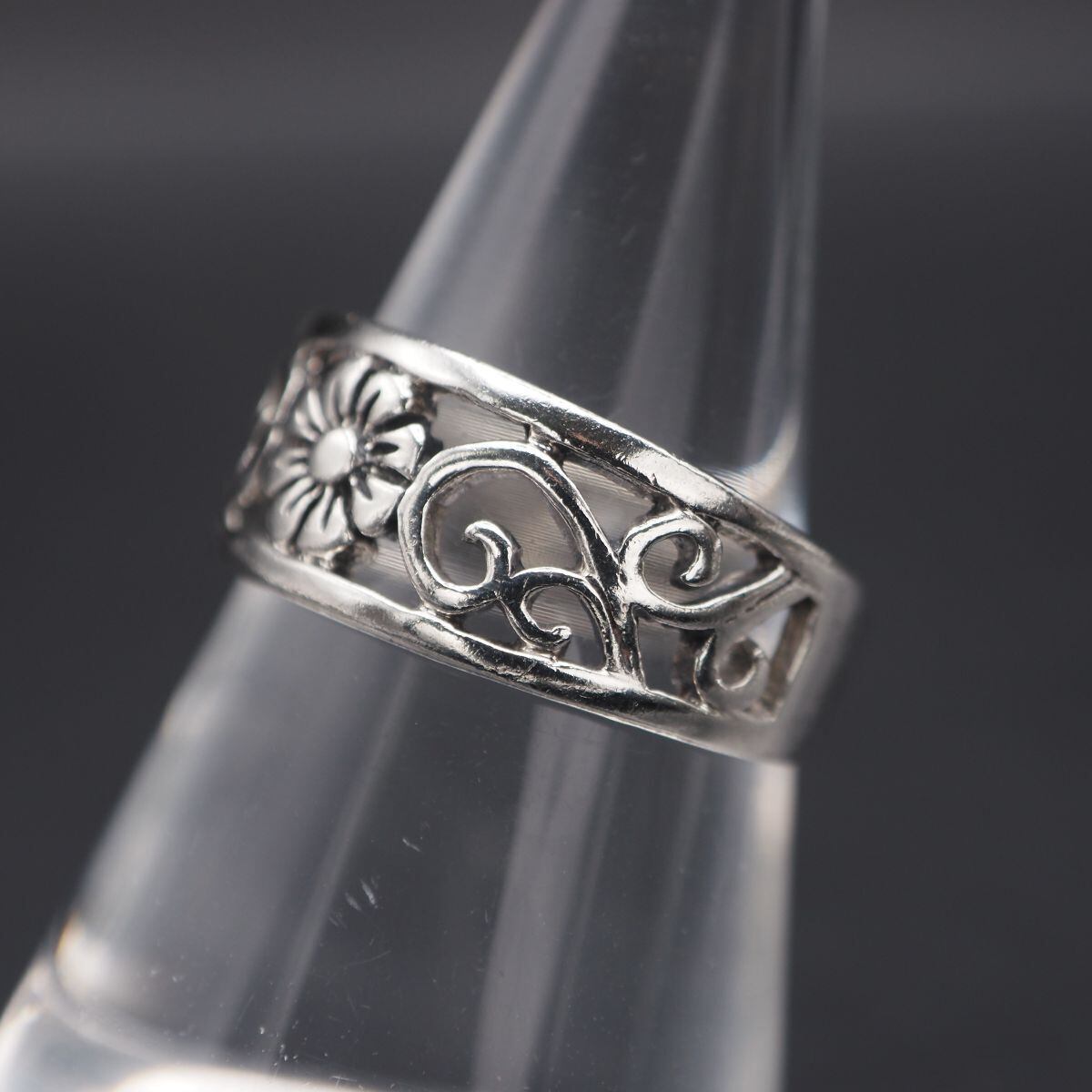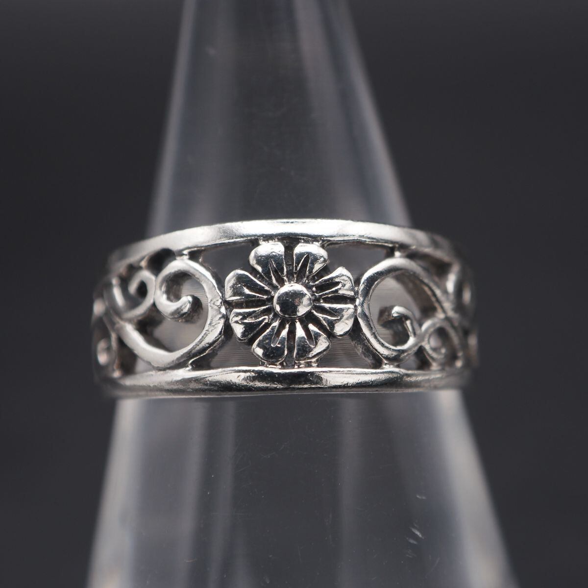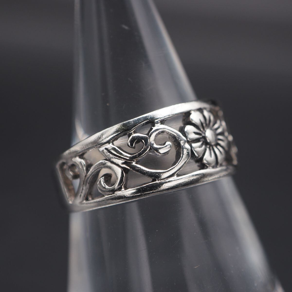 G583 ヴィンテージ 925刻印 リング フラワー 透かし彫り デザイン シルバー 指輪 13号