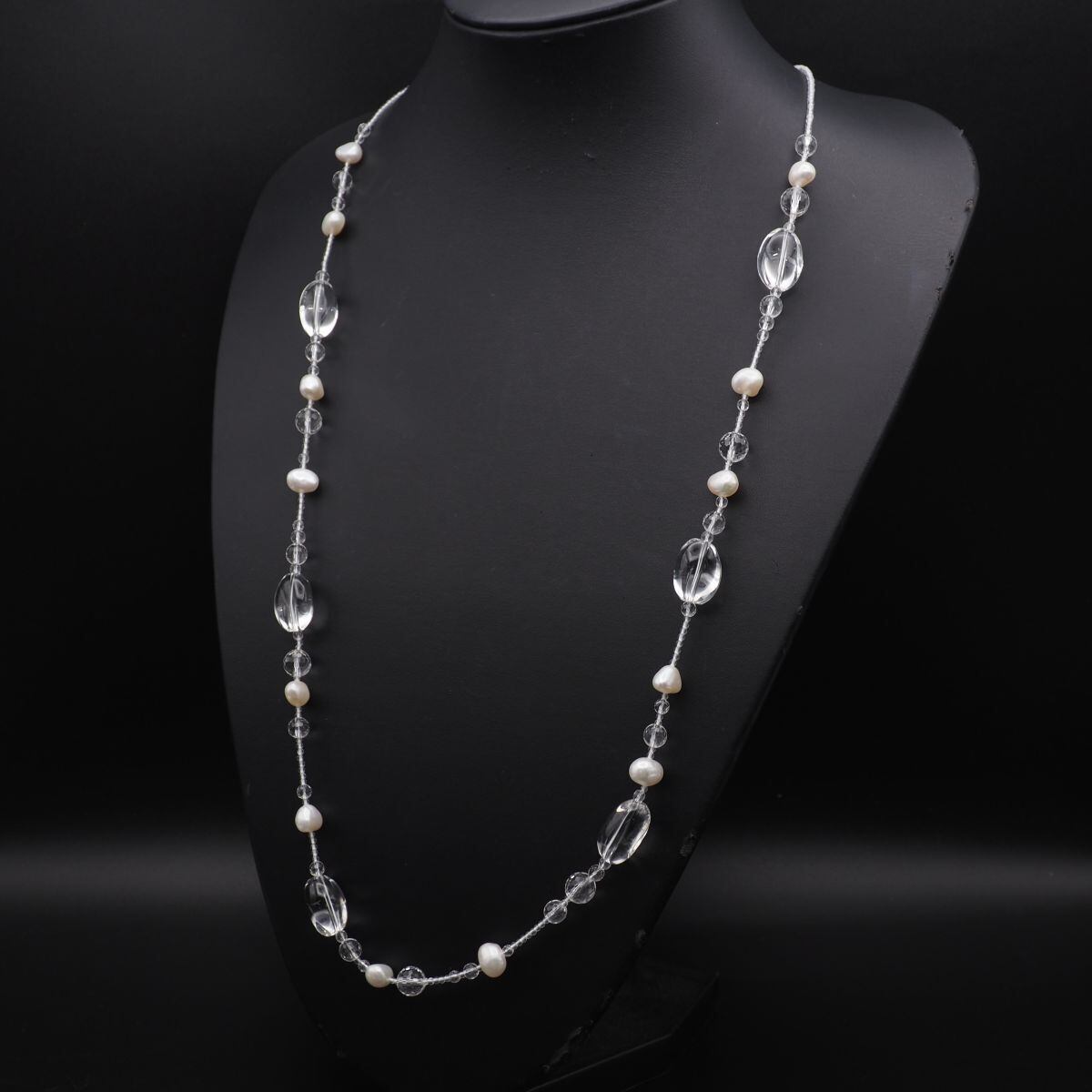 G203 水晶 淡水真珠 パール SILVER925刻印 ネックレス デザイン シルバー 6月誕生石