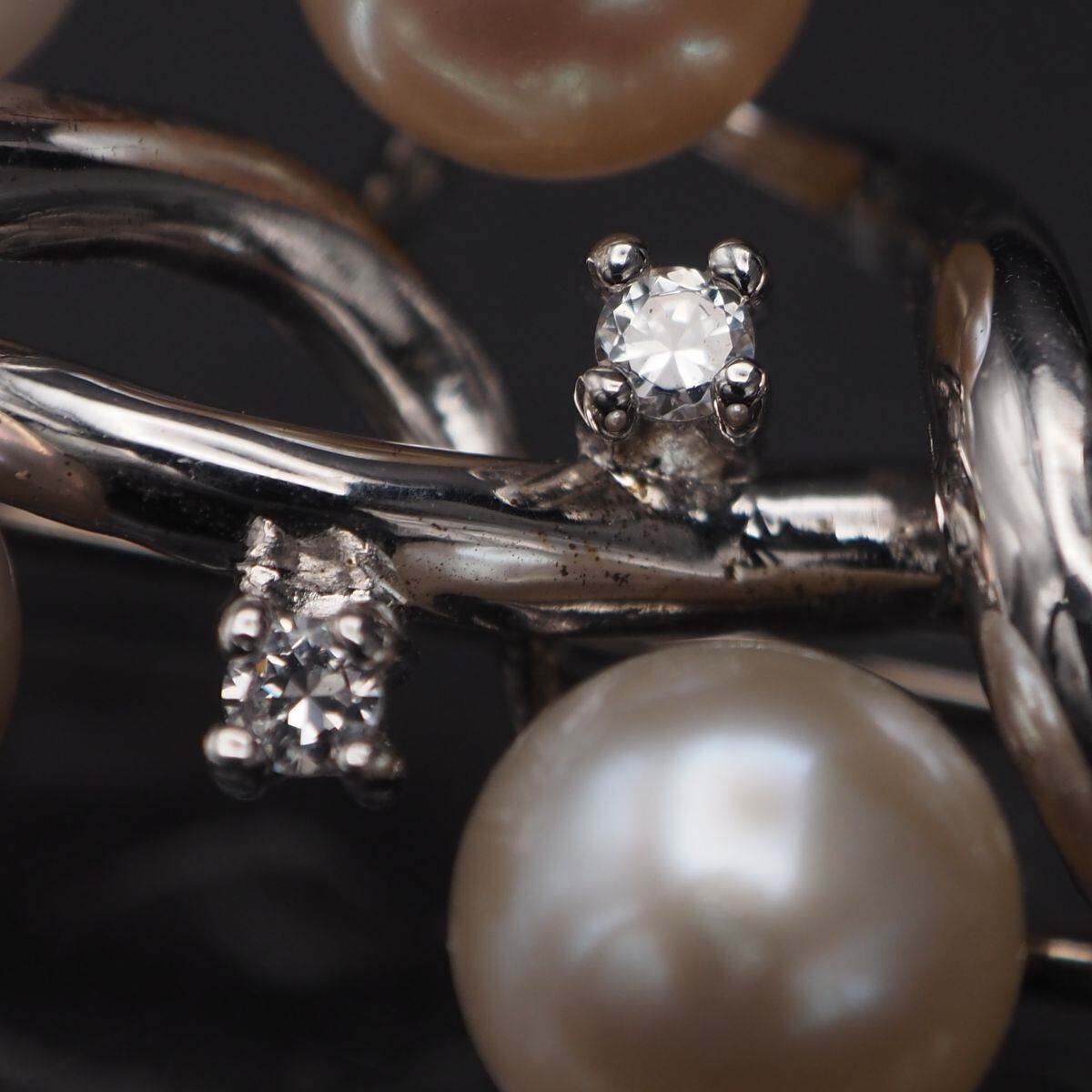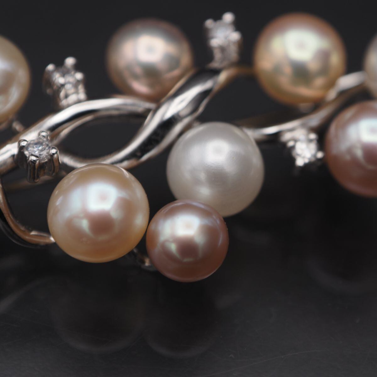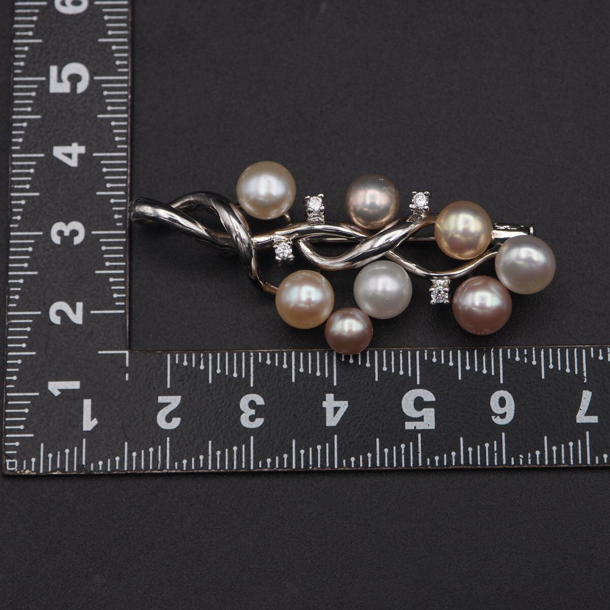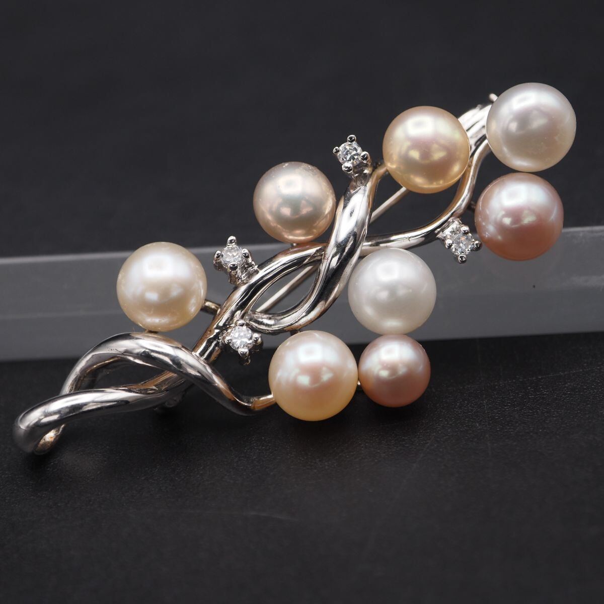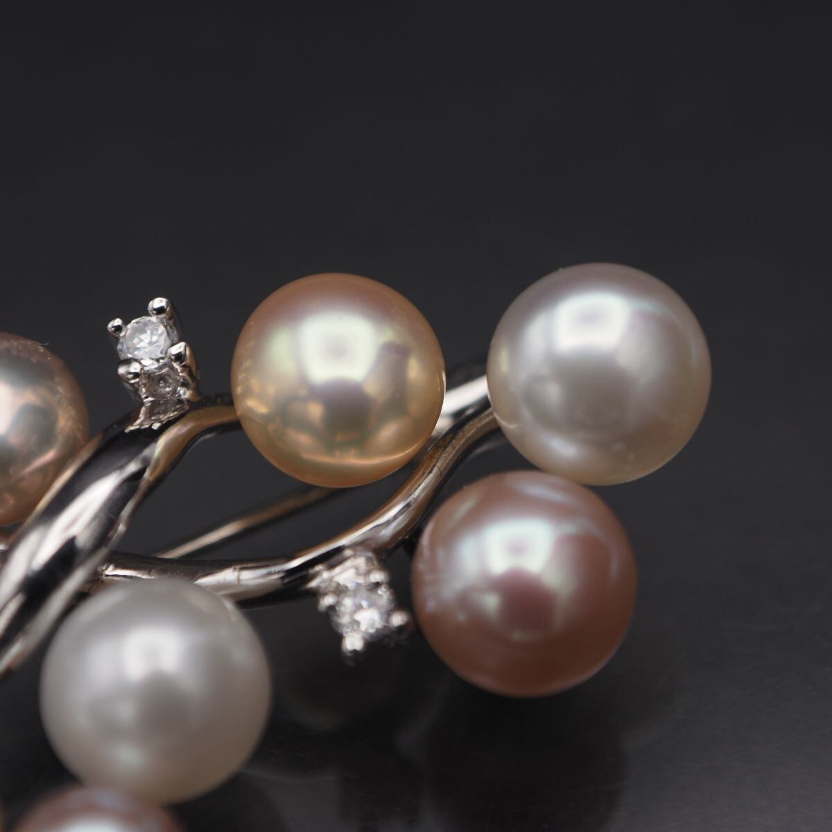 G649 淡水真珠 パール ダイヤモンド風 925刻印 ブローチ マルチカラー デザイン シルバー コサージュ 6月誕生石