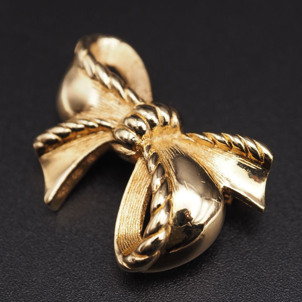 G672 クリスチャン ディオール Christian Dior リボン ゴールド デザイン ブローチ